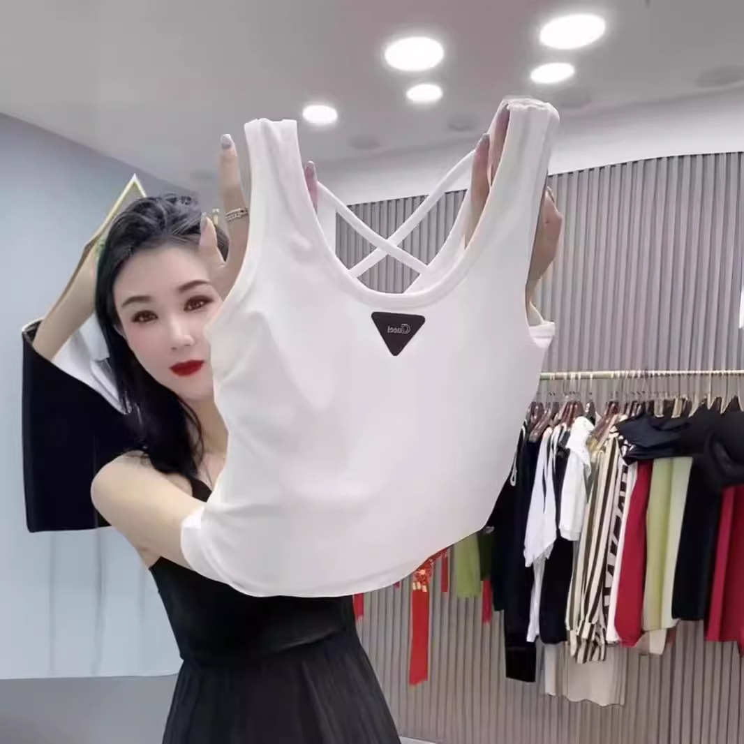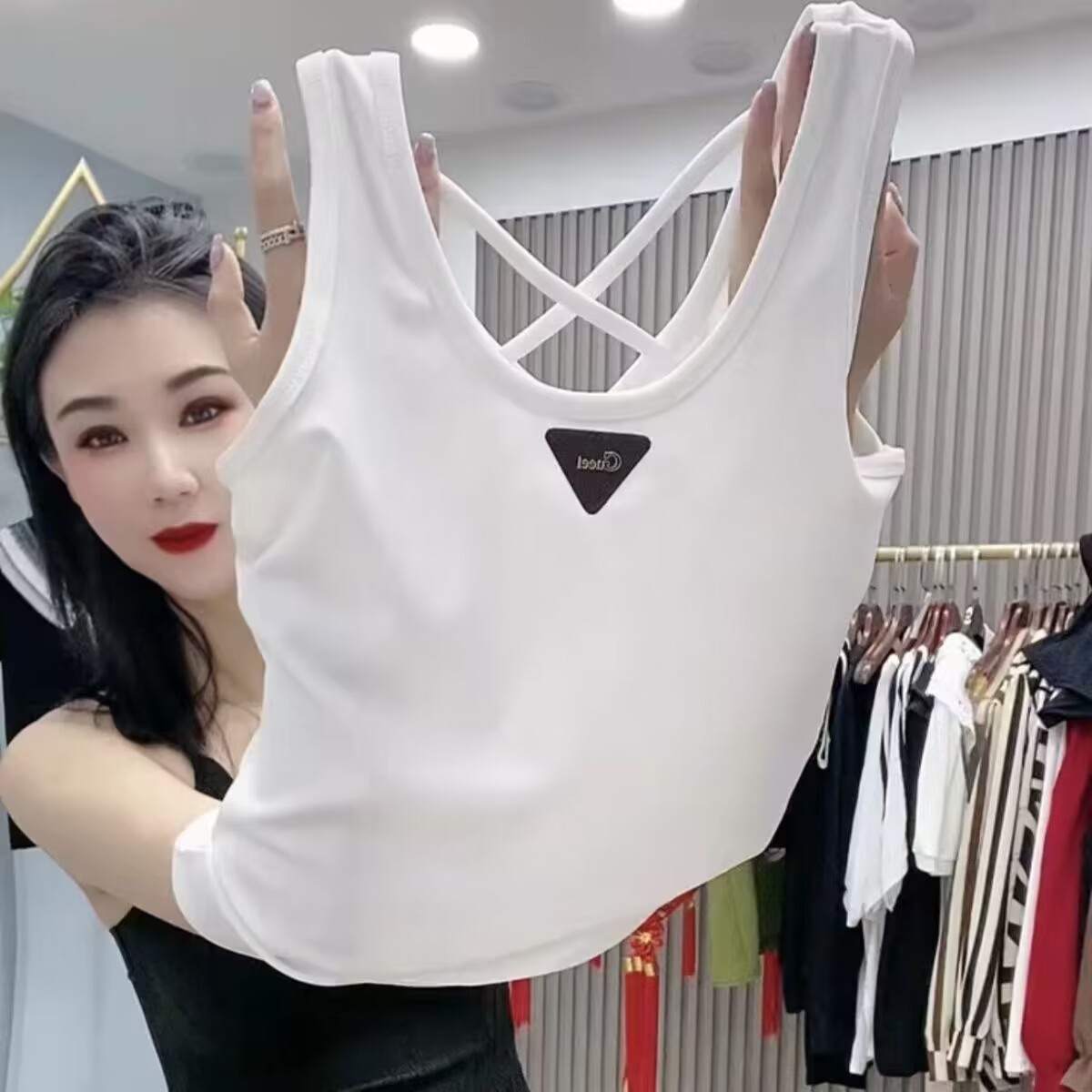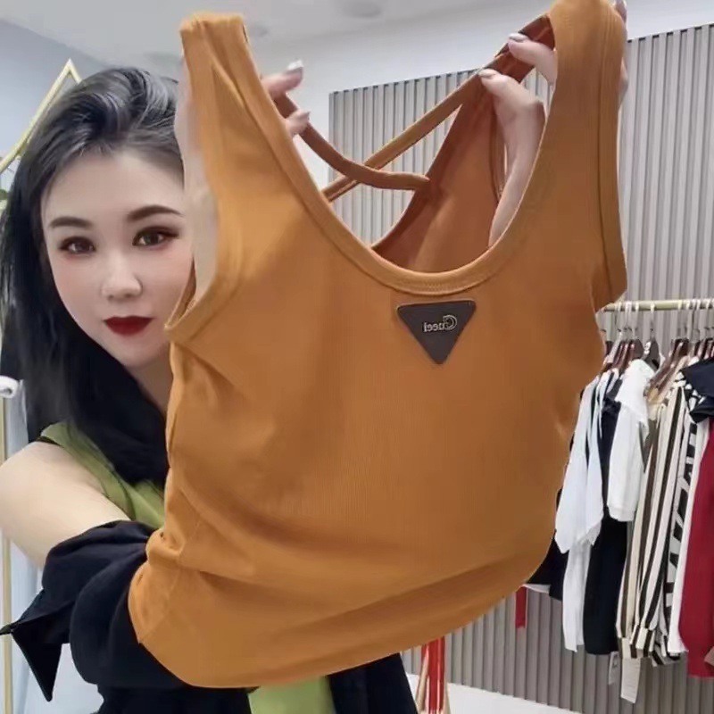 플러스 사이즈 조끼 금속 삼각형 라벨 내부 카미 솔 조끼 슬림 핏 외부 착용 민소매 구덩이 스트립 탑베이스 조끼 올 매치