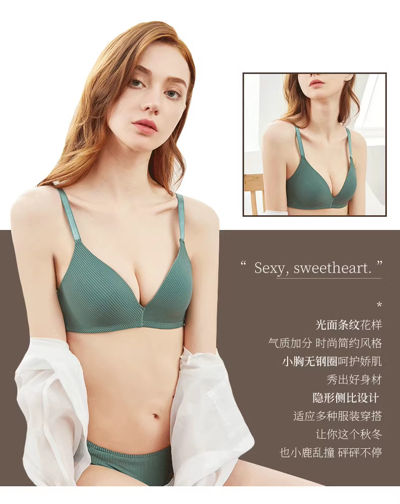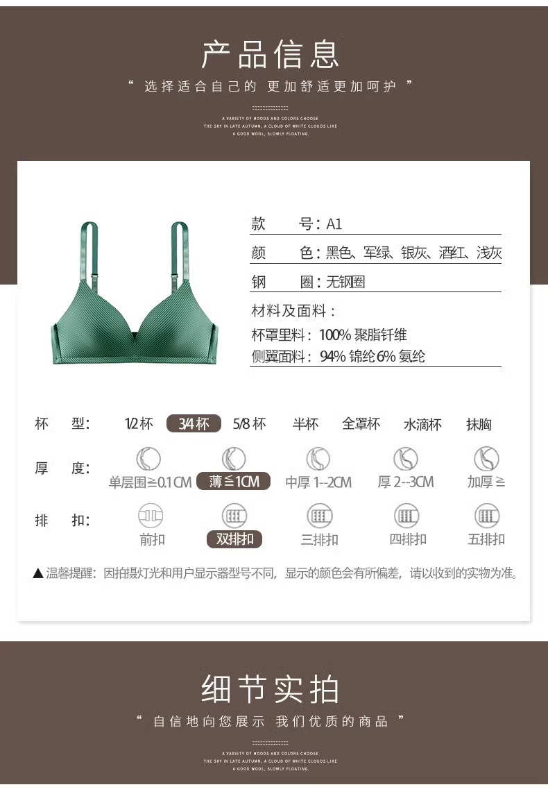 얇은 여름 추적없는 줄무늬 속옷 여성의 작은 가슴 모임 소녀 조정 가능한 큰 가슴 브래지어 작은 텍스트