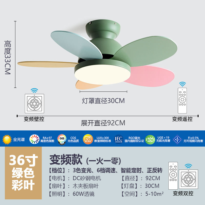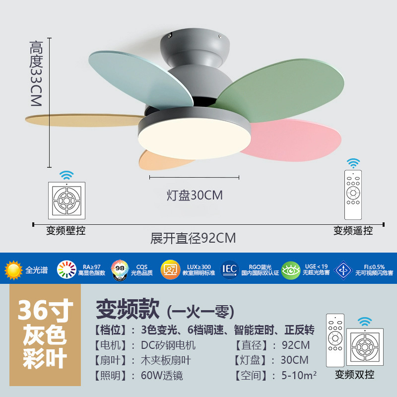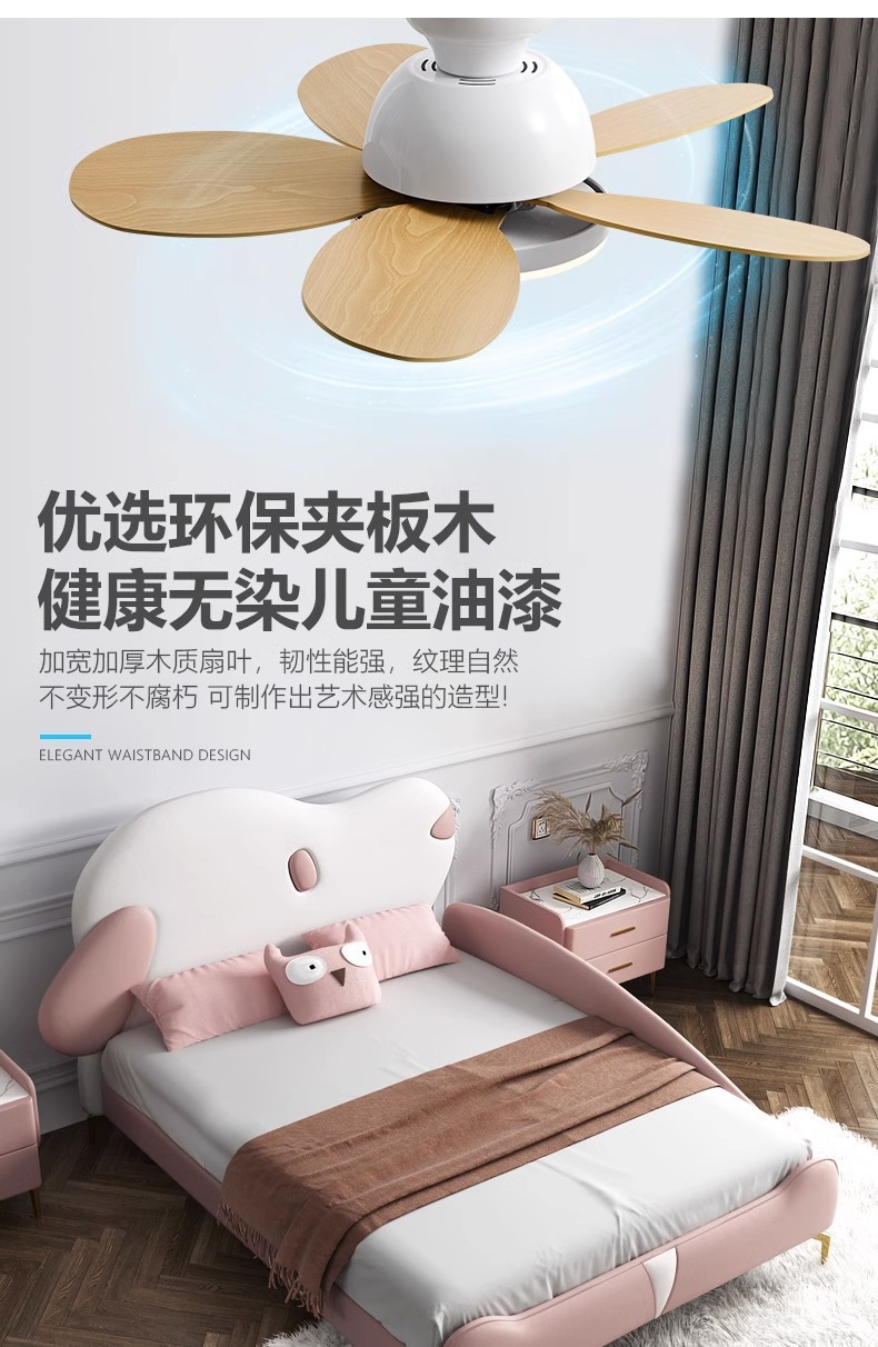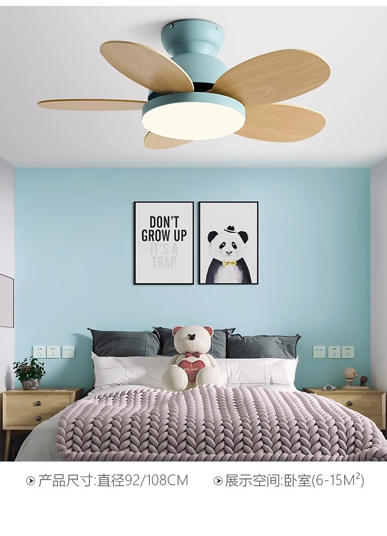 북유럽 팬 라이트 어린이 방 침실 라이트 팬 가구 다이닝 룸 팬 라이트 침묵 통합 팬 샹들리에
