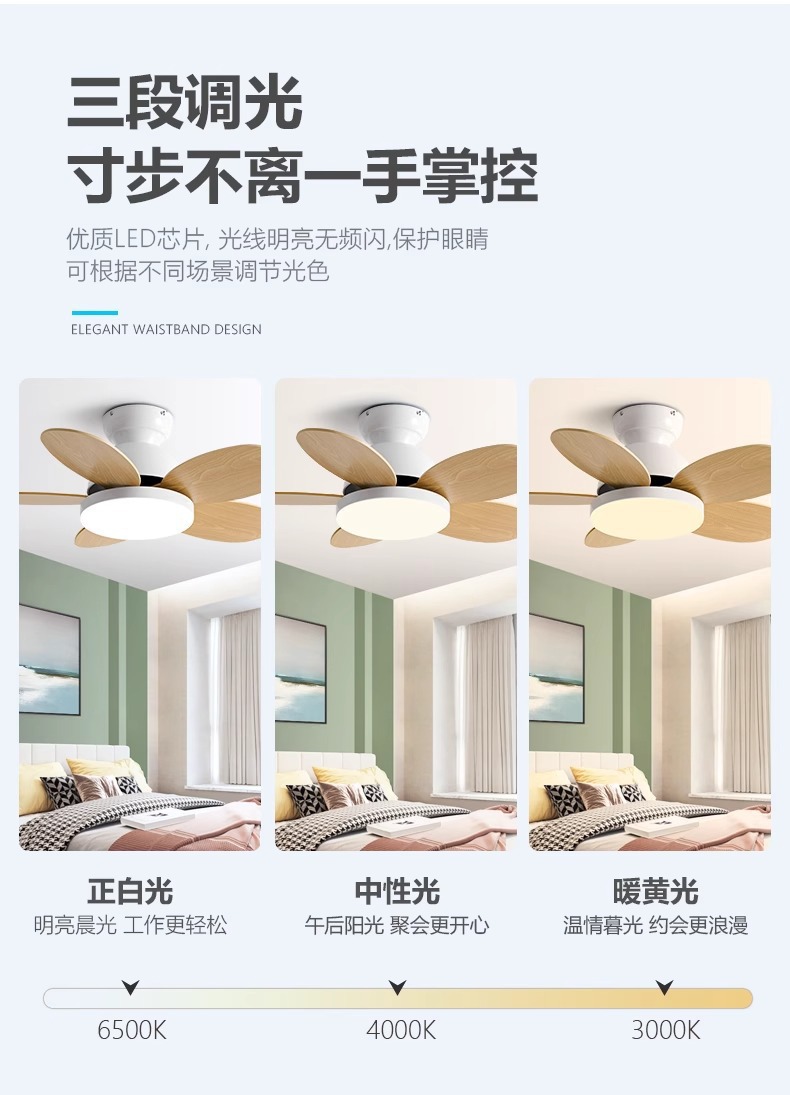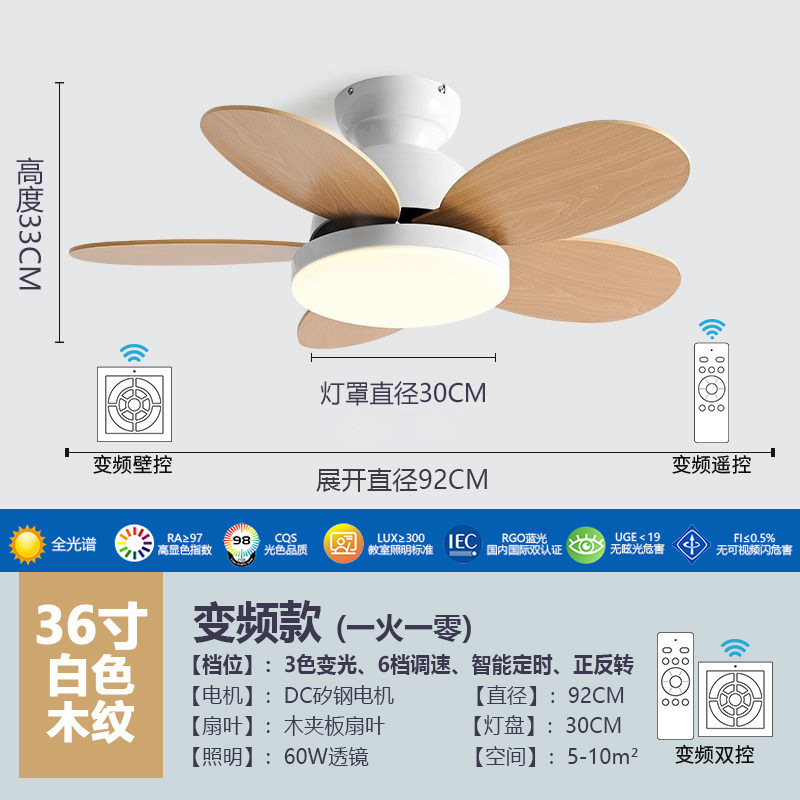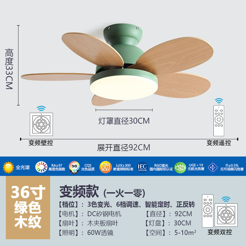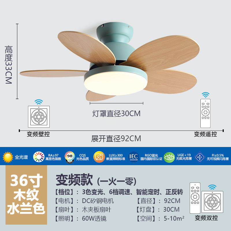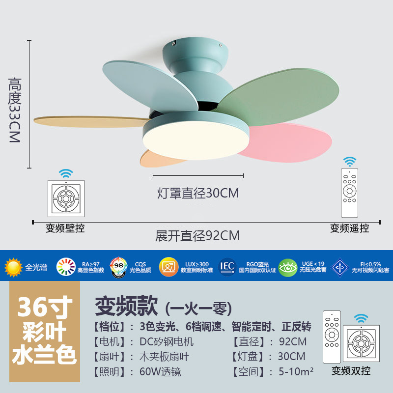 북유럽 팬 라이트 어린이 방 침실 라이트 팬 가구 다이닝 룸 팬 라이트 침묵 통합 팬 샹들리에