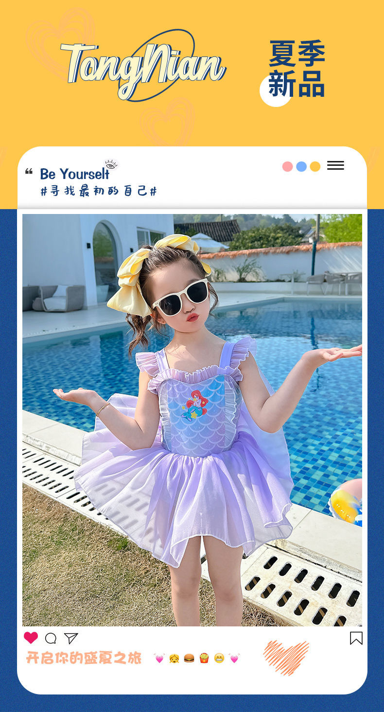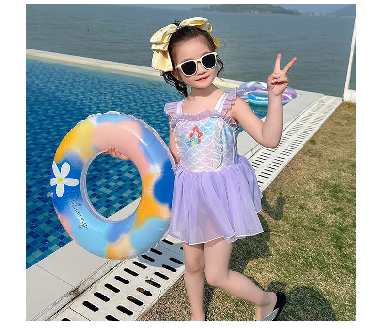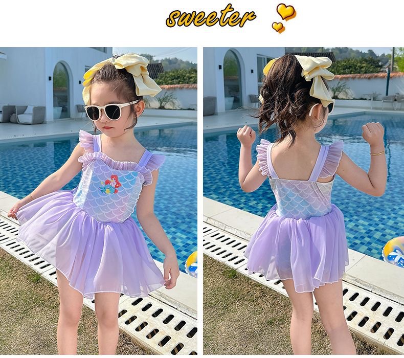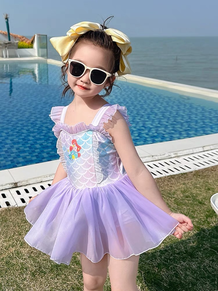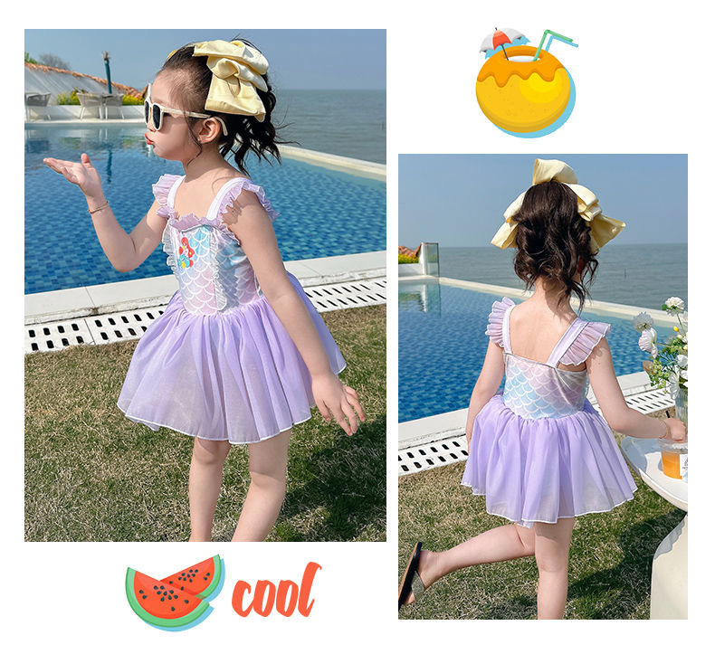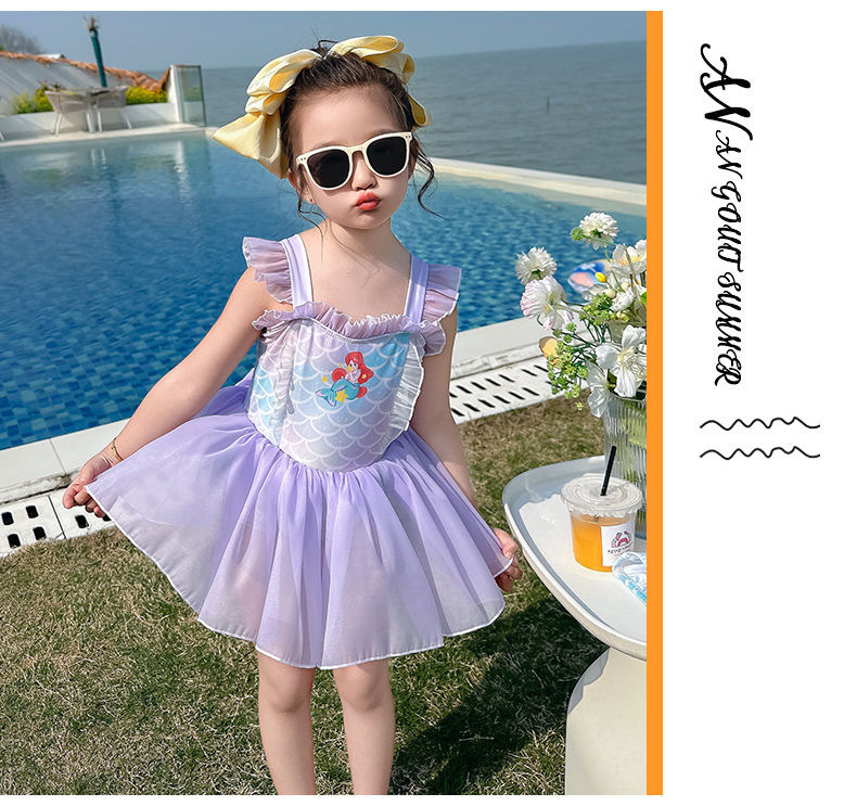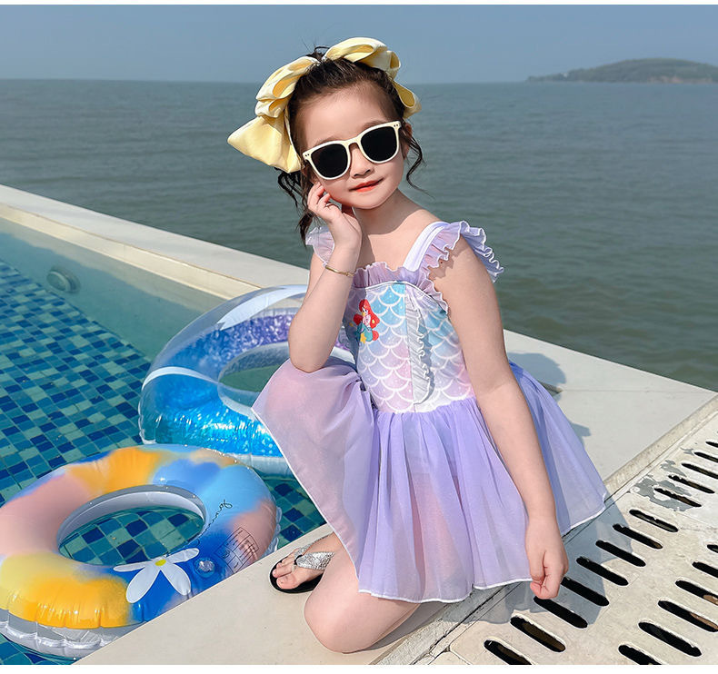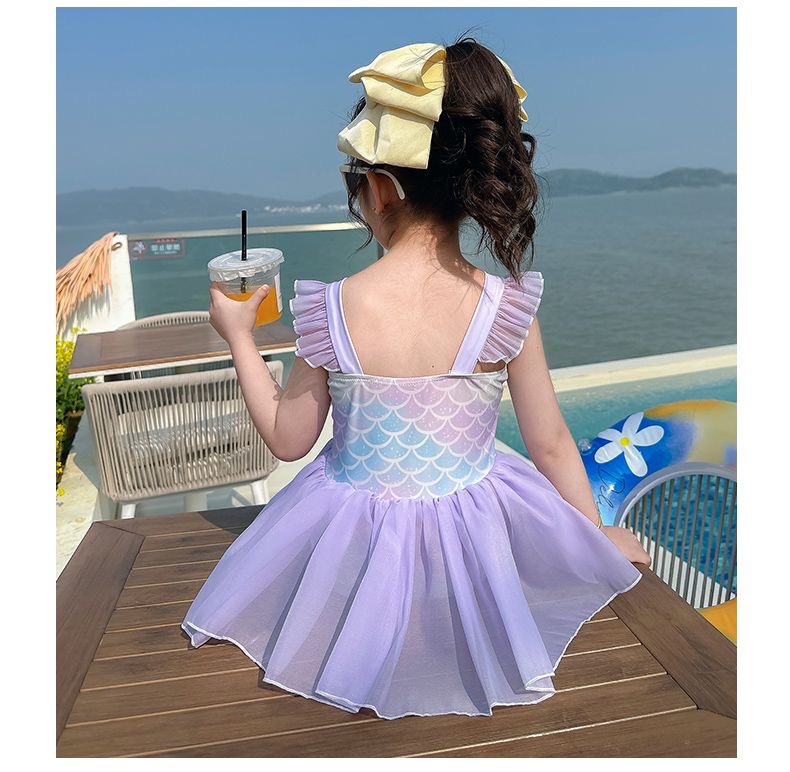 소녀 여름 서양식 어린이 수영복 2024 새로운 아기 소녀 선스크린 인어 얇은 공주 거즈 빠른 건조스토어 가기