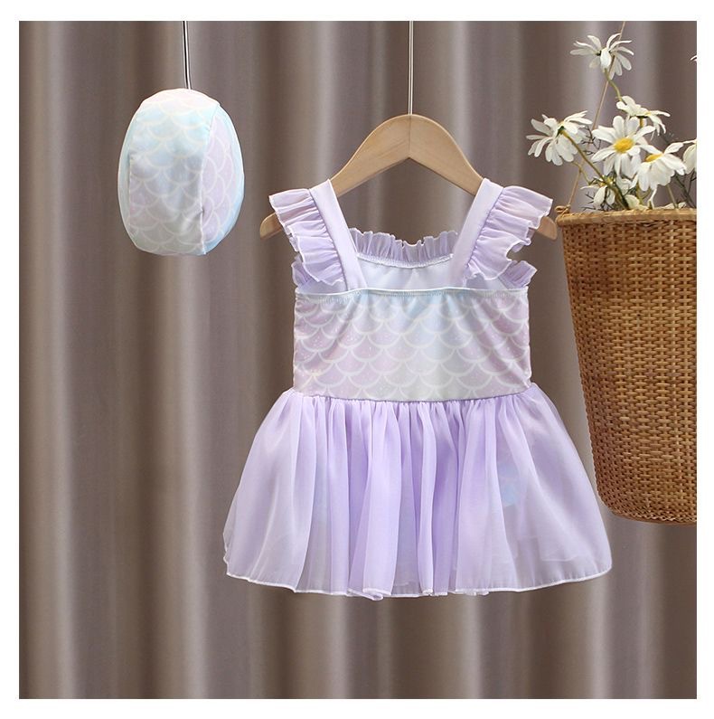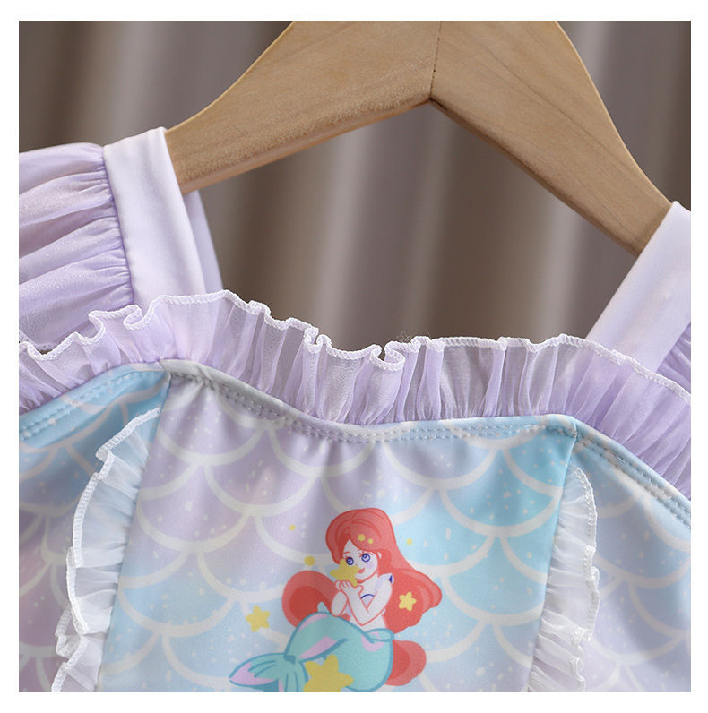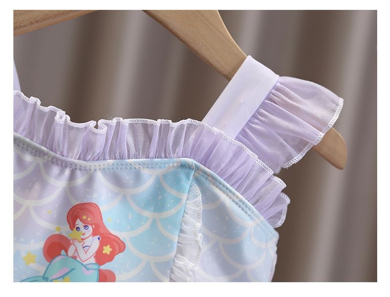 소녀 여름 서양식 어린이 수영복 2024 새로운 아기 소녀 선스크린 인어 얇은 공주 거즈 빠른 건조