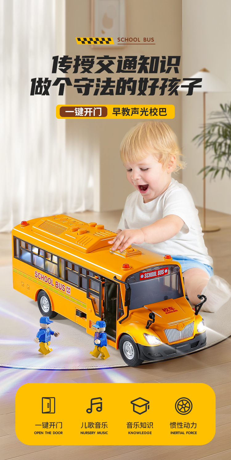 대형 스쿨 버스 장난감 소년 어린이 시뮬레이션 음악 이야기 버스 아기 모델 관성 버스 도매스토어 가기