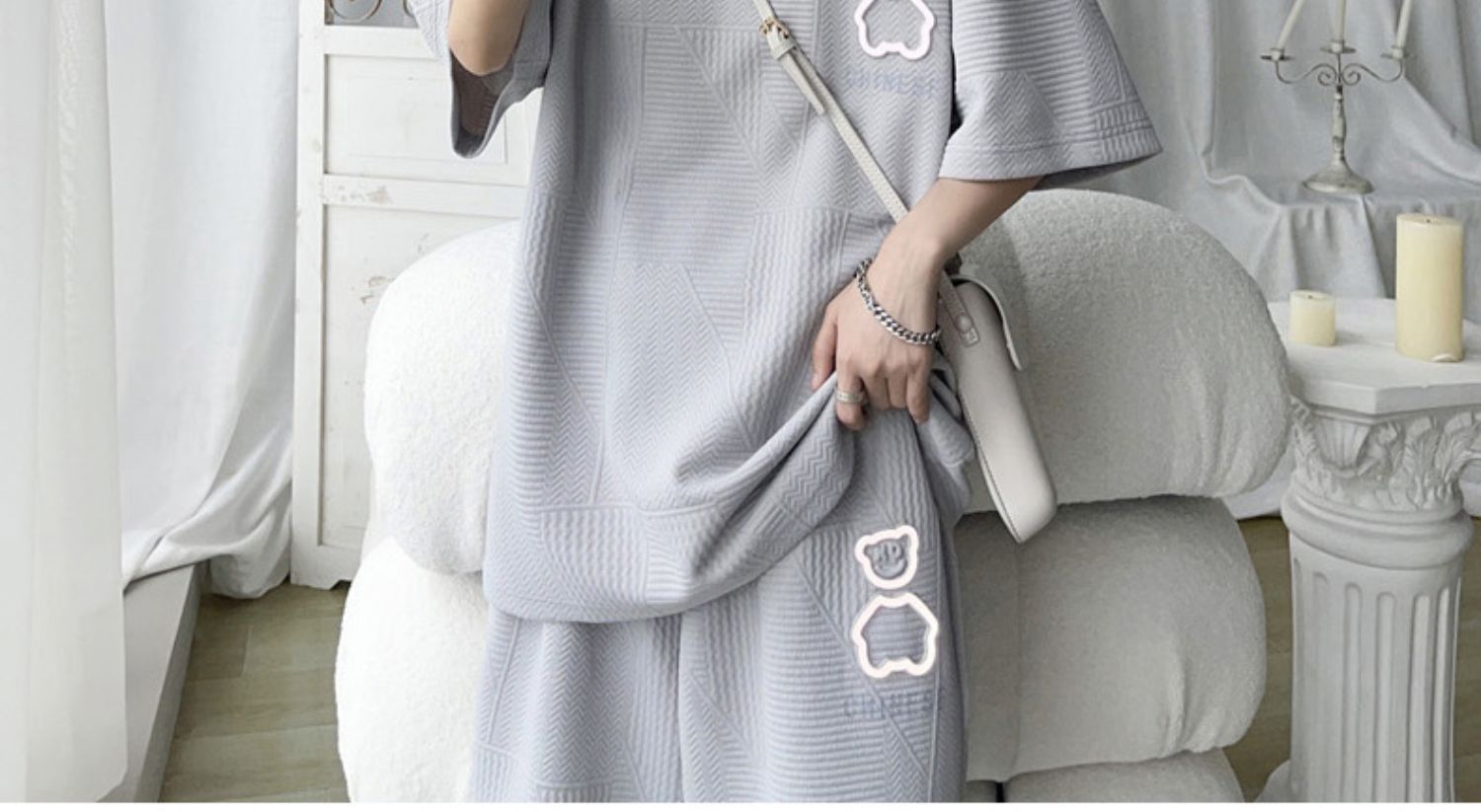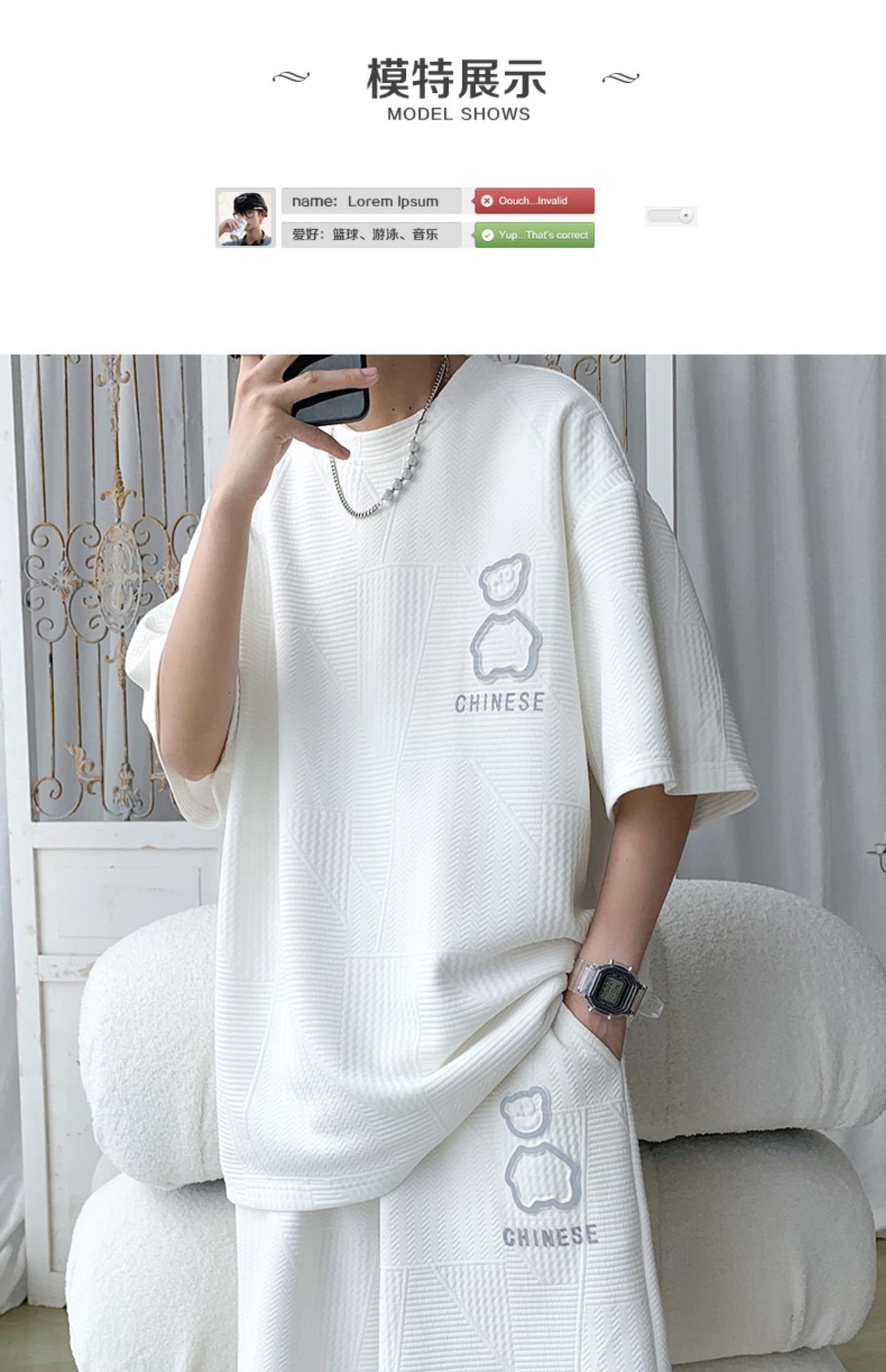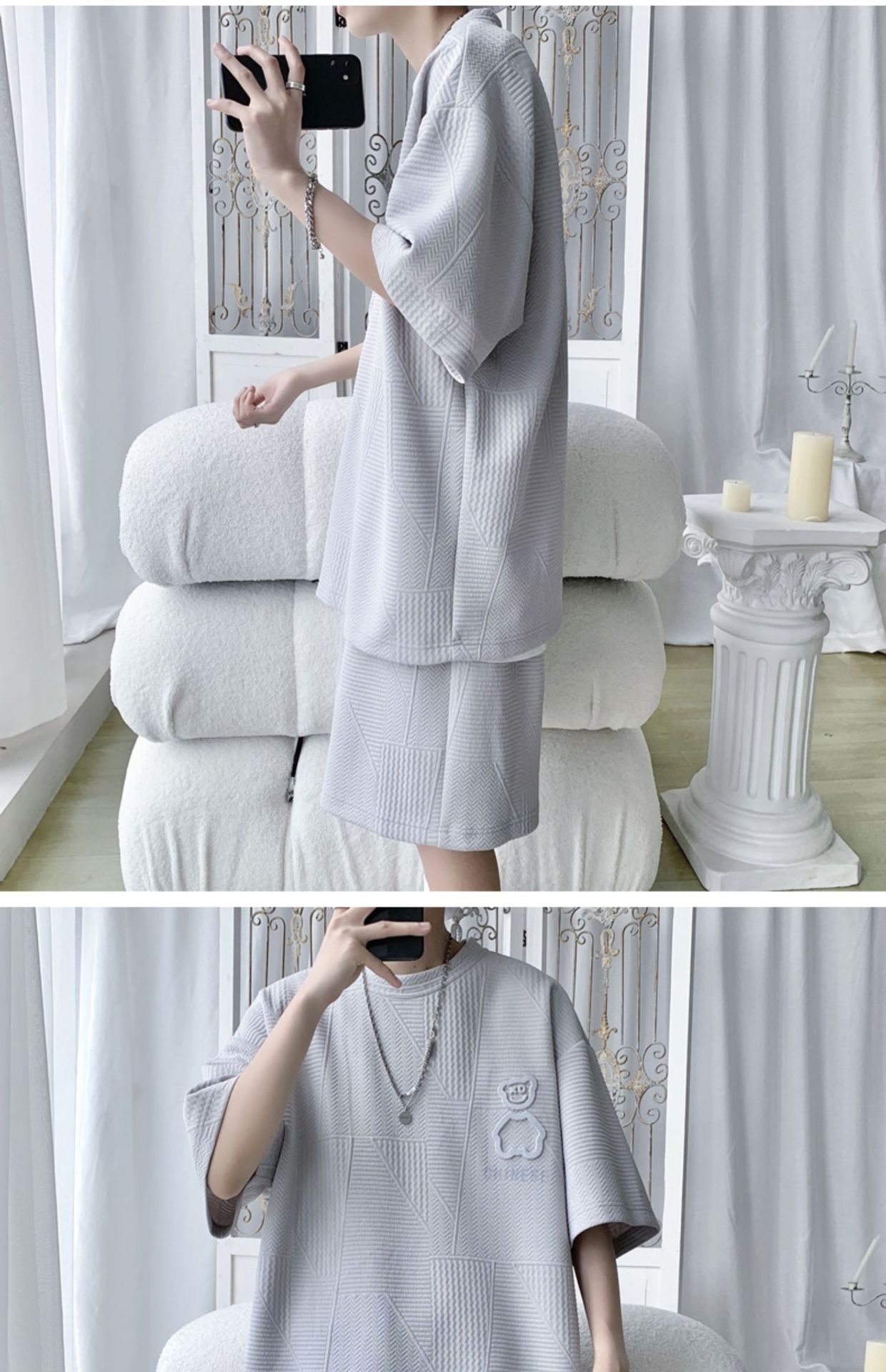 와플 캐주얼 세트 남성 플러스 사이즈 여름 약간 뚱뚱한 소년들은 여름 스포츠 반팔 반바지 세트를 착용합니다.스토어 가기
