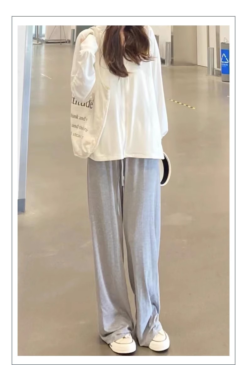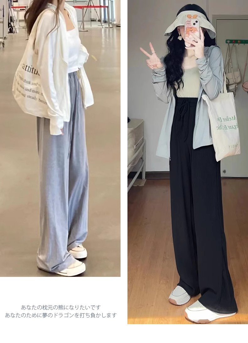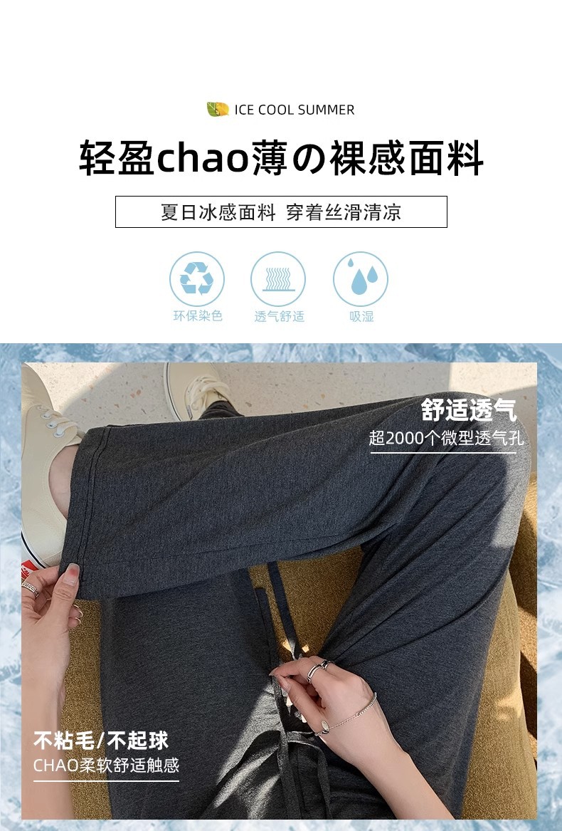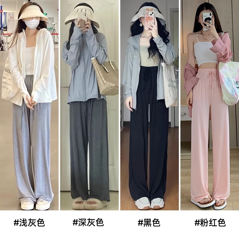 회색 아이스 실크 스포츠 바지 여성의 여름 얇은 높은 허리 느슨한 스트레이트 캐주얼 와이드 다리 바지 쿨 안티 모기 선 스크린 바지