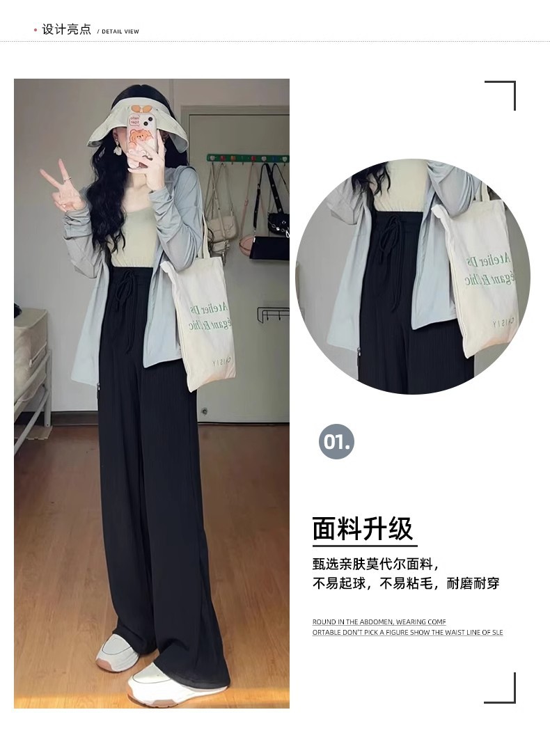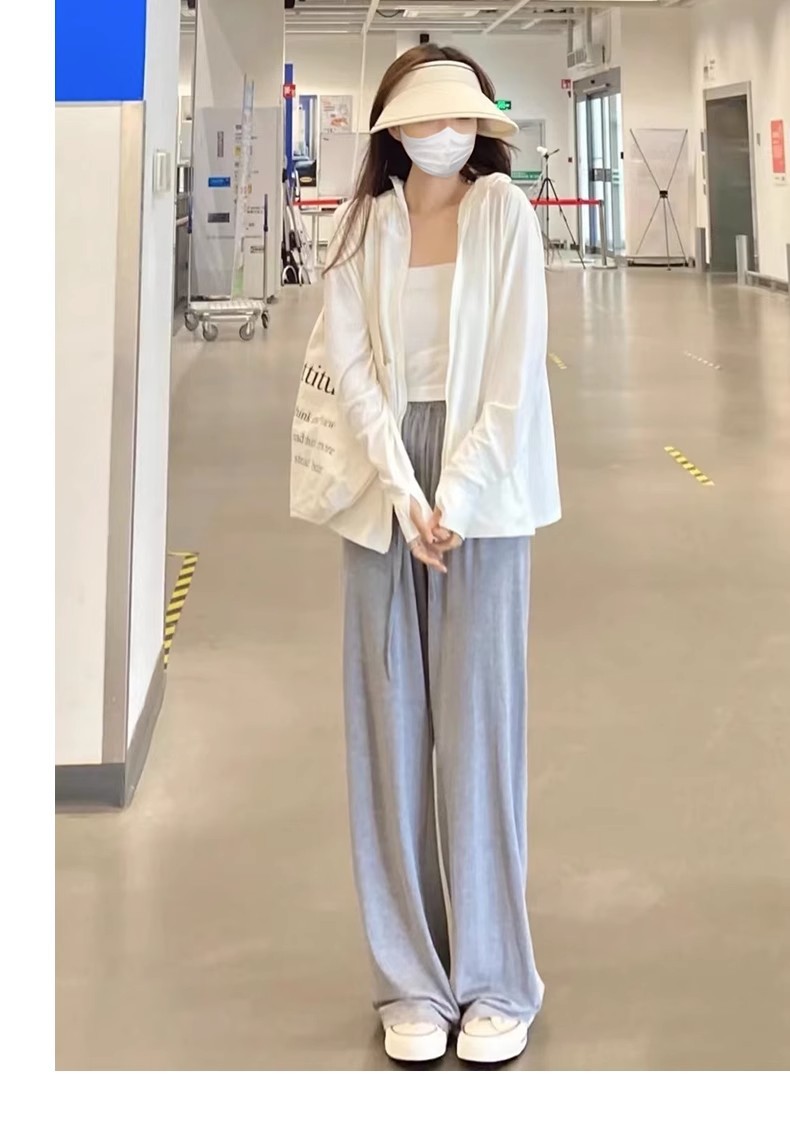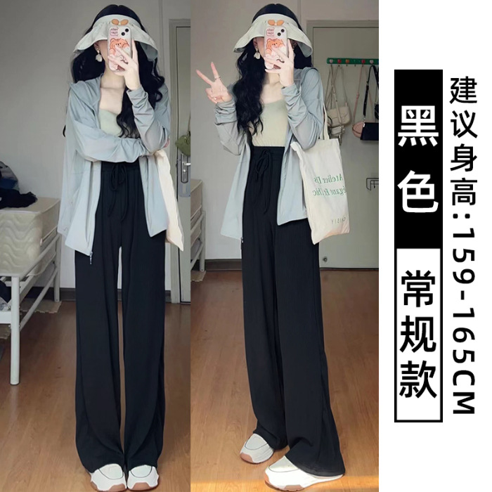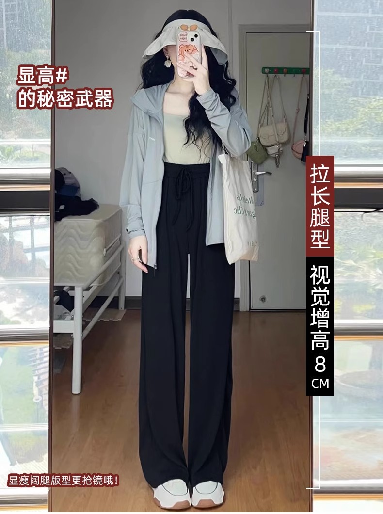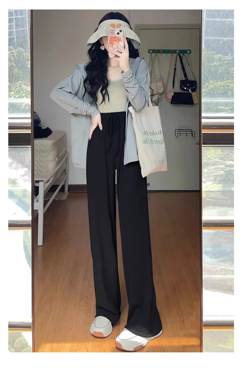 회색 아이스 실크 스포츠 바지 여성의 여름 얇은 높은 허리 느슨한 스트레이트 캐주얼 와이드 다리 바지 쿨 안티 모기 선 스크린 바지