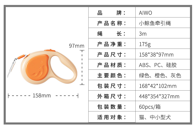 작은 고래 개폐식 가죽 끈 조명 애완 동물 용품 개 가죽 끈 자동 애완 동물 개폐식 가죽 끈