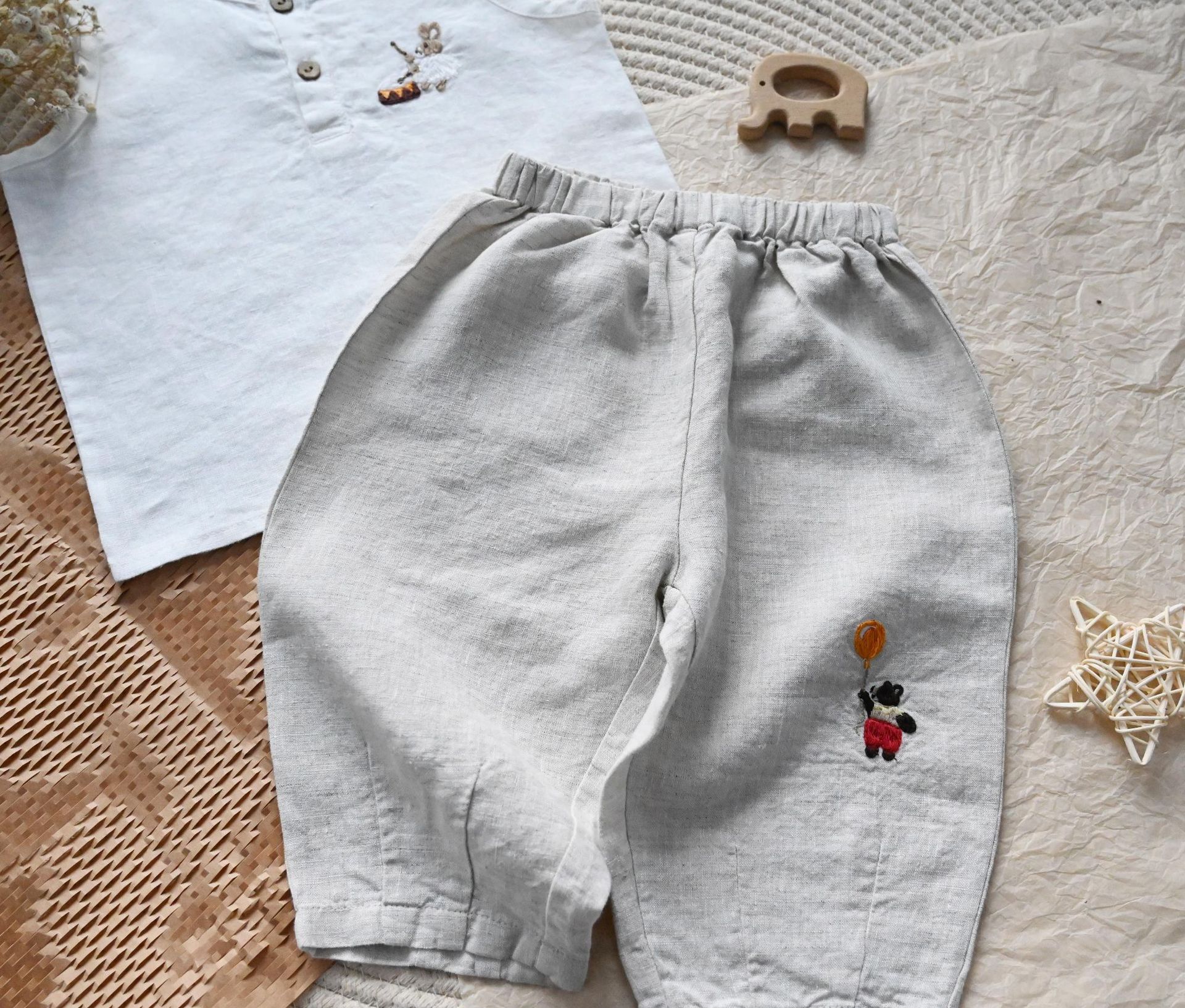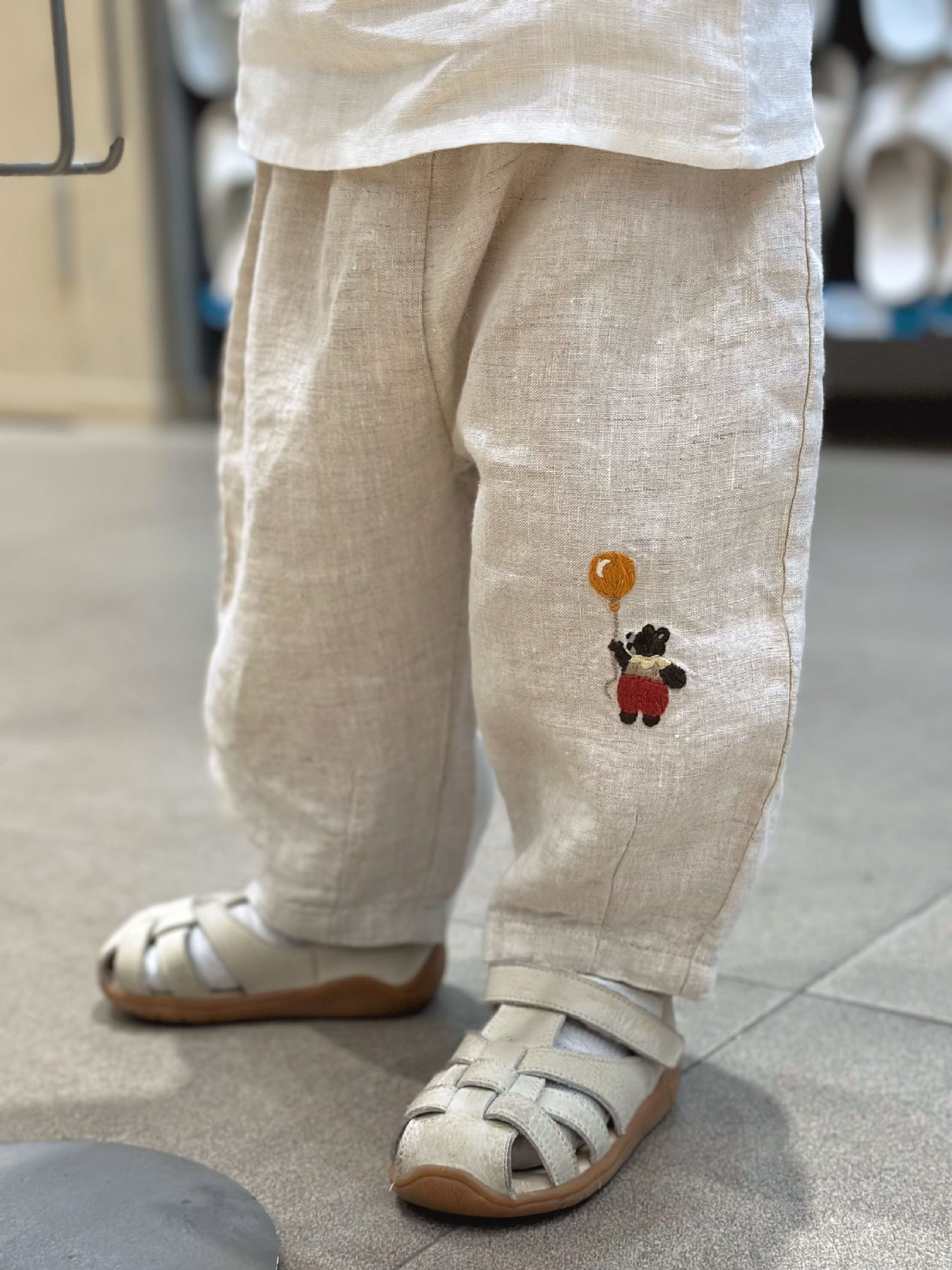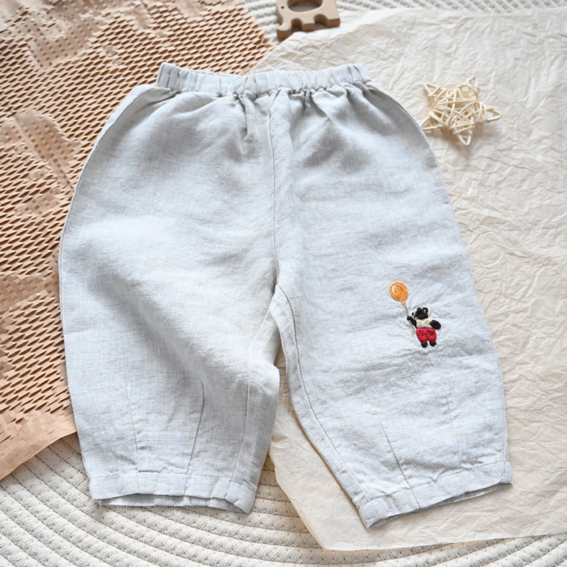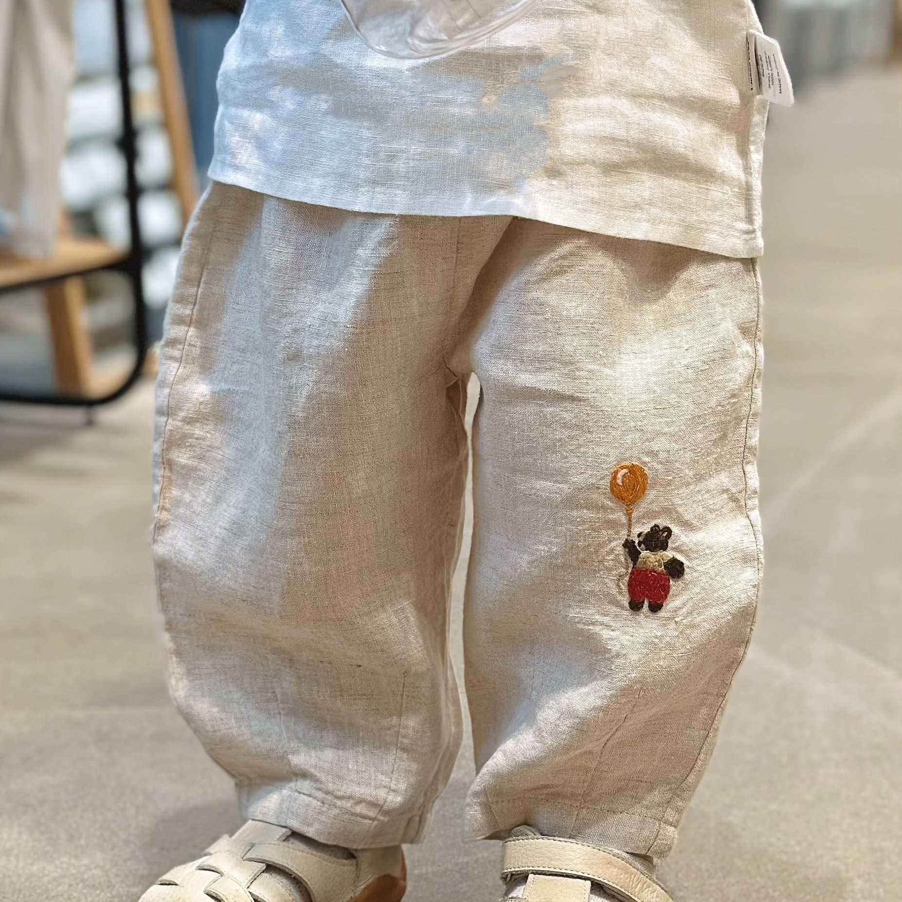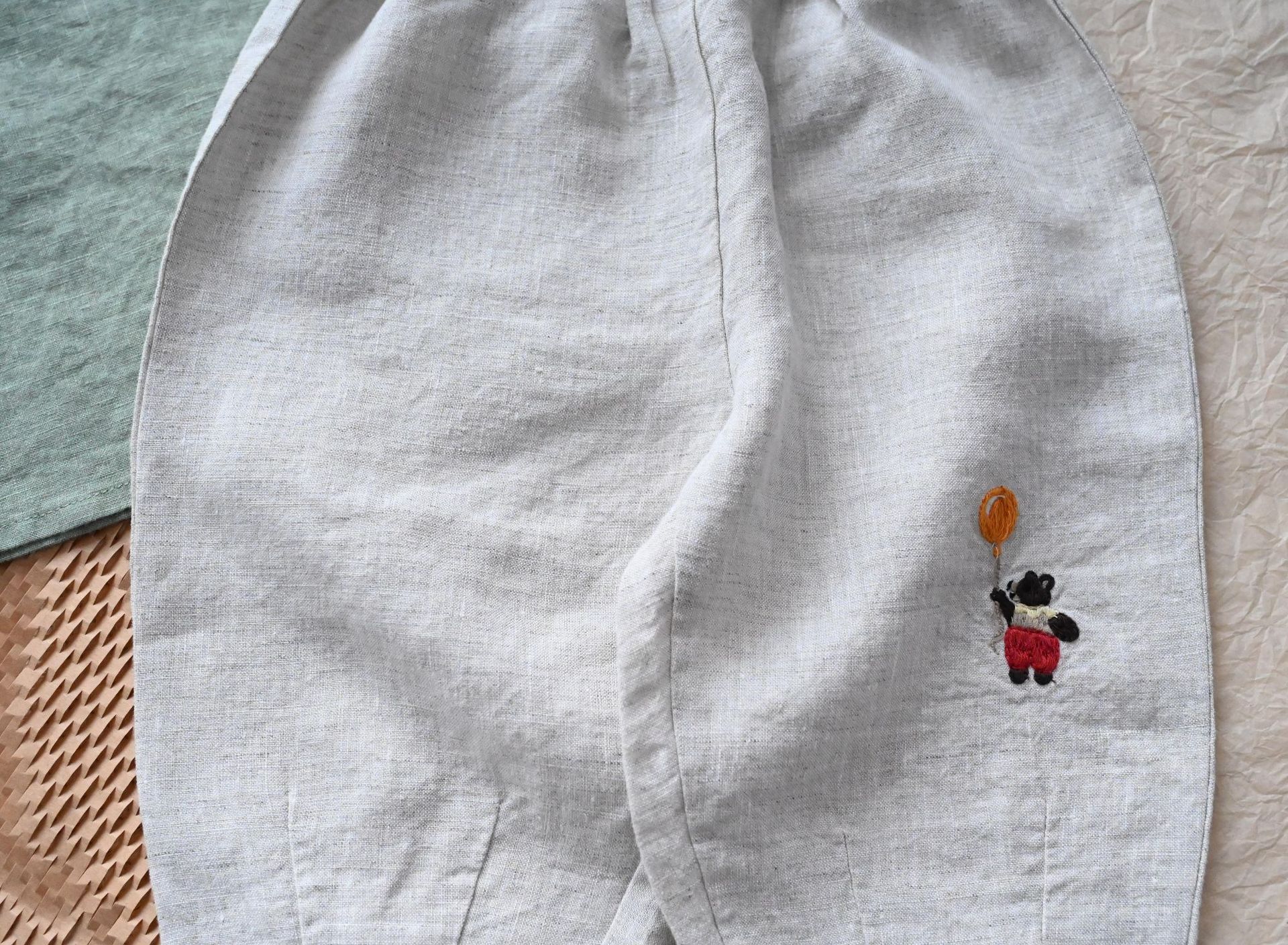 • 자수 곰 린넨 바지