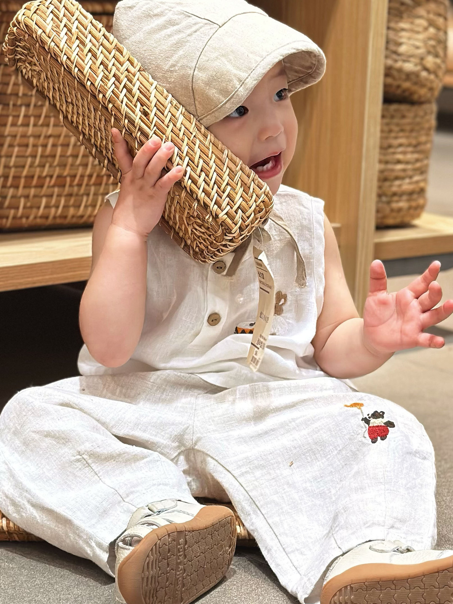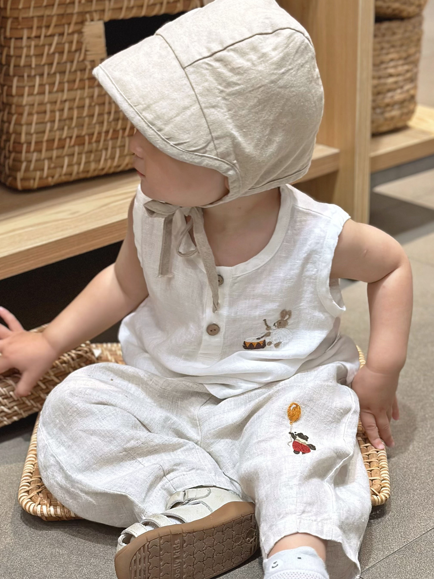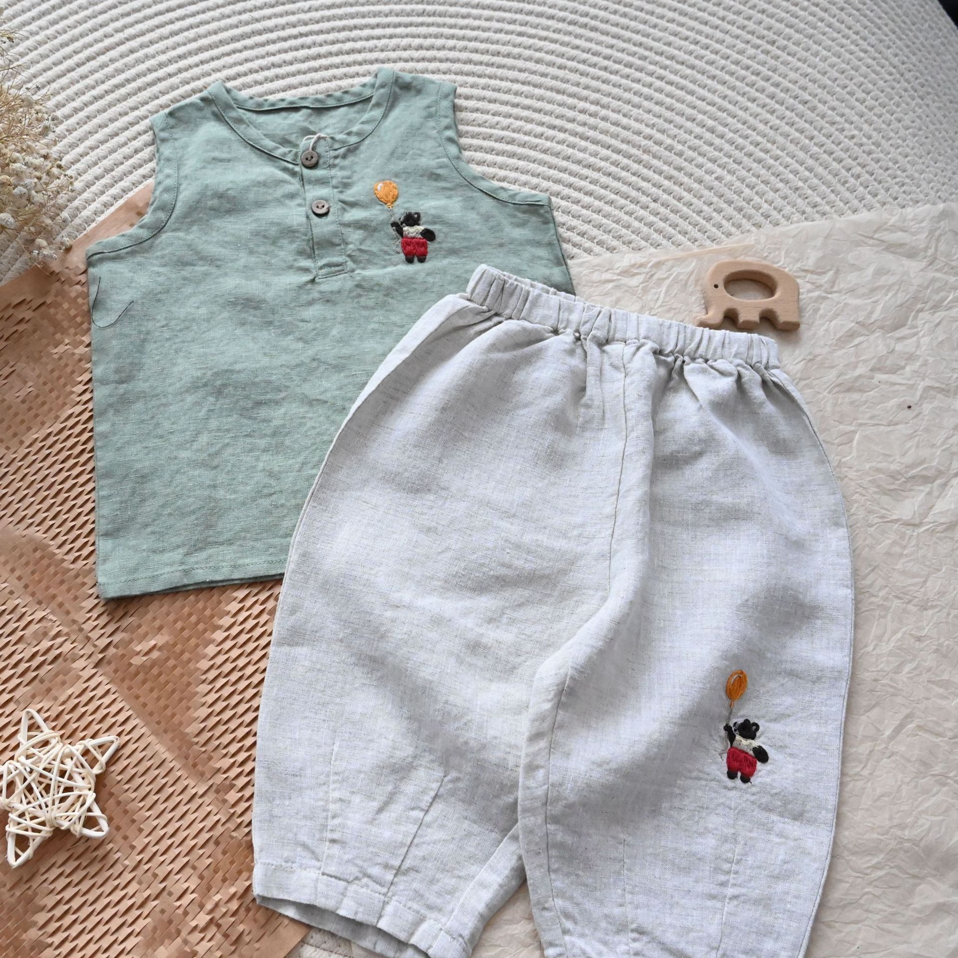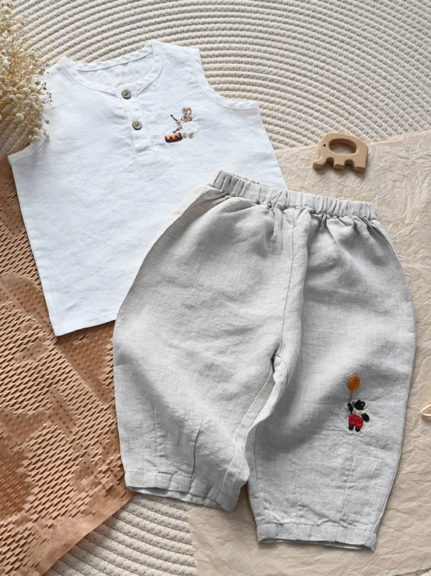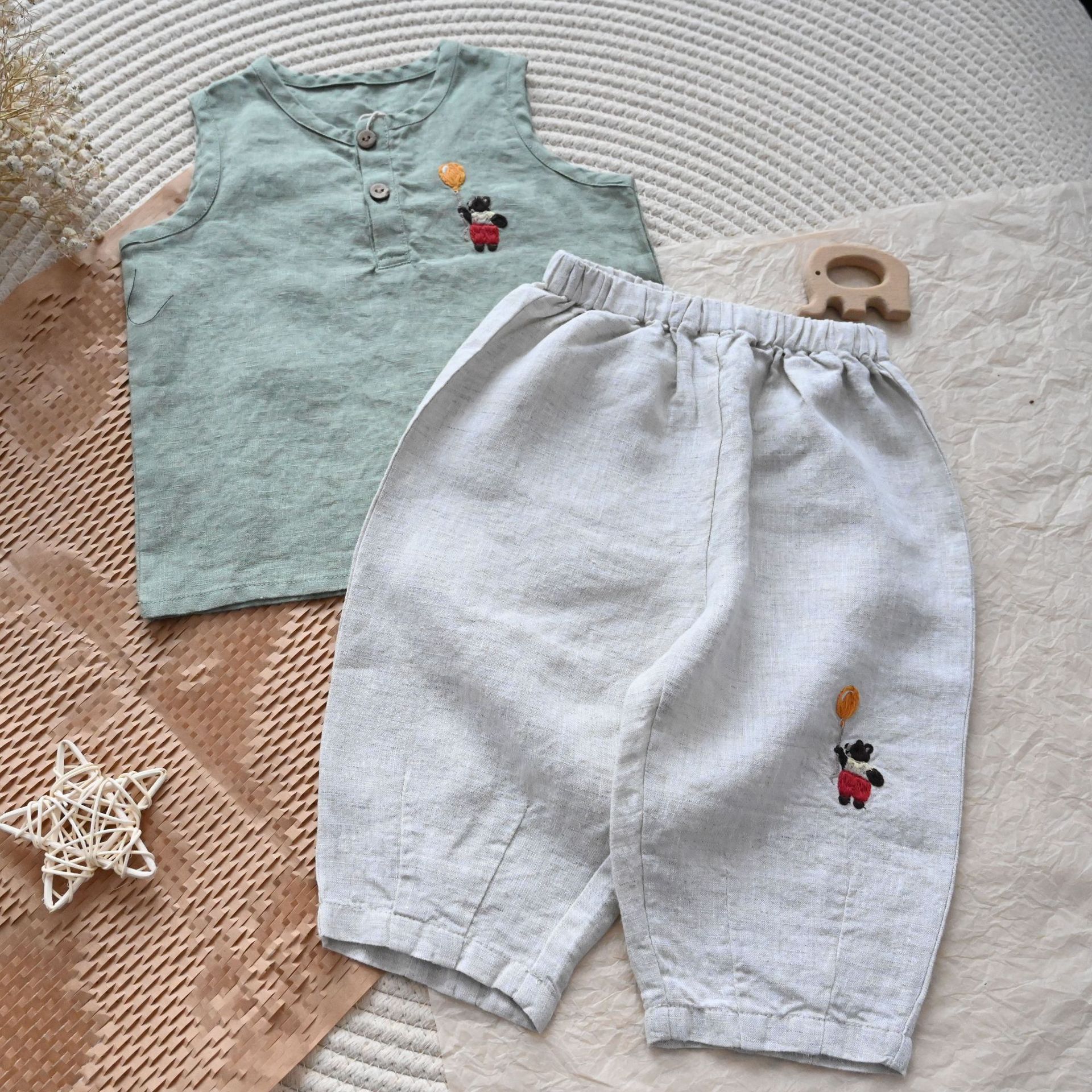 • 자수 곰 린넨 바지