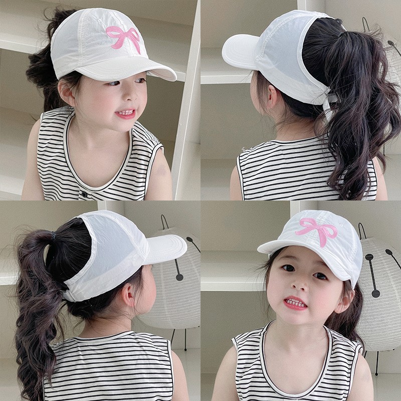 여름 아기 소녀는 포니 테일 빠른 건조 활 반 빈 탑 야구 모자 아이들의 얇은 햇빛 모자 백 타워를 묶을 수 있습니다스토어 가기