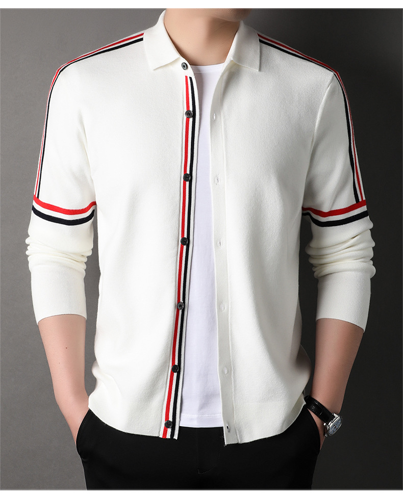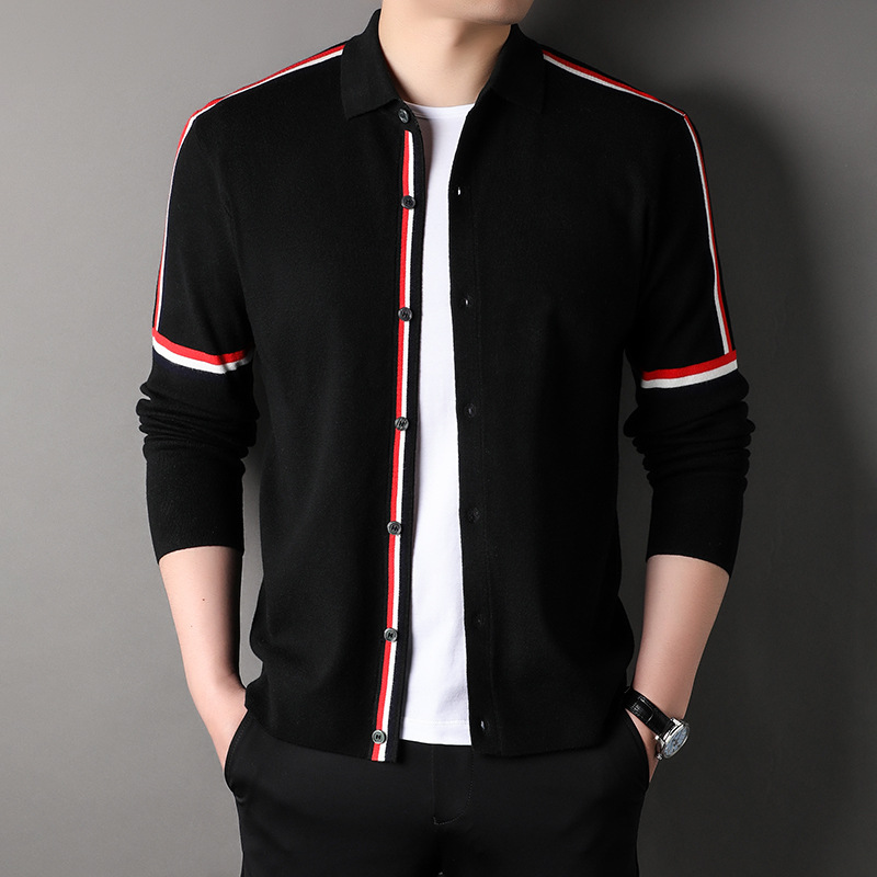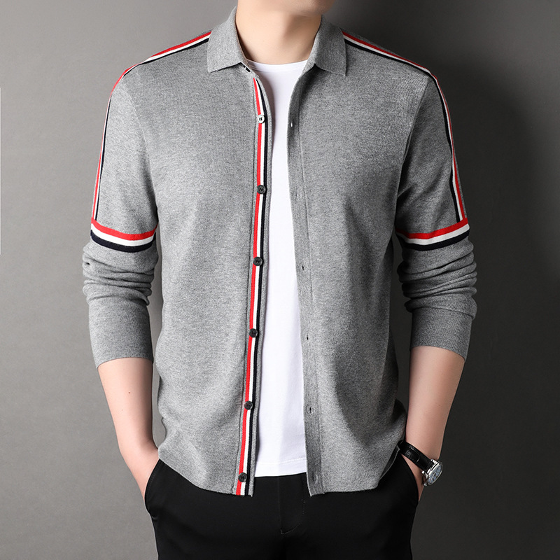 남성 청소년 하이 엔드 봄과 가을 뉴 슬리브 플래켓 컬러 매칭 니트 카디건 롱 슬리브 간단한 패션 스웨터 트렌디