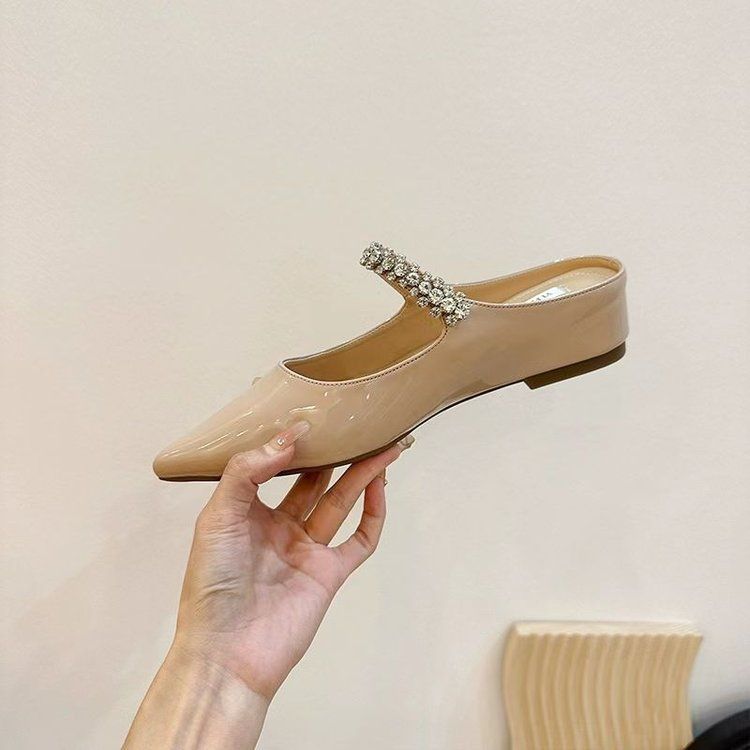 2025년 여름 신상품, 워터 라인스톤 반슬리퍼, 순수하고 매혹적인 뾰족코 반슬리퍼, 외출용 여성 샌들, 요정 스타일 여성 슬리퍼스토어 가기