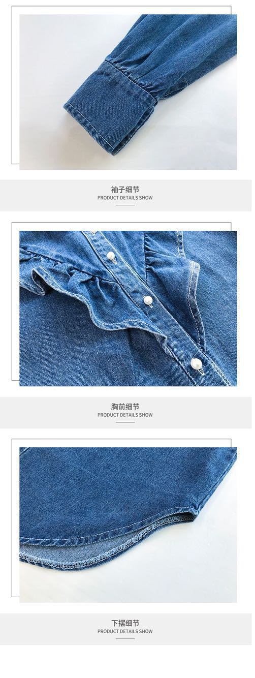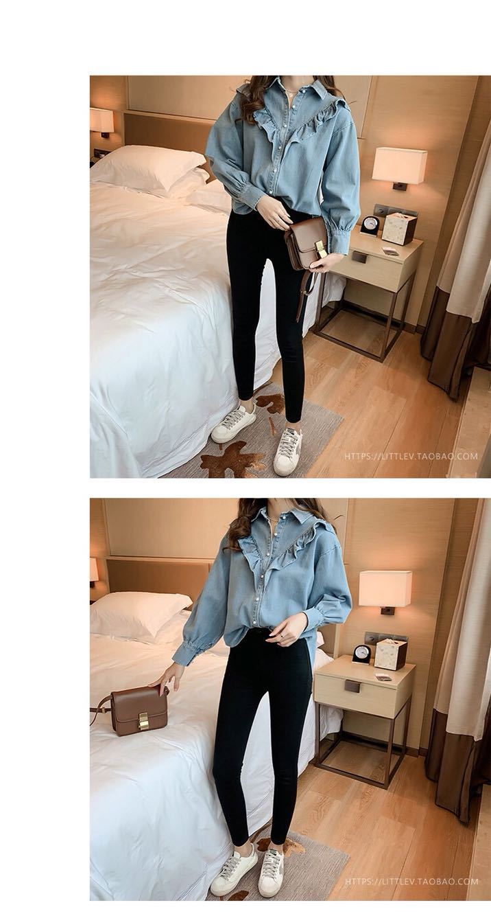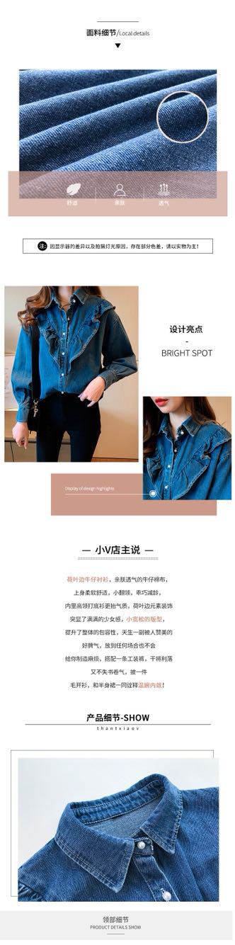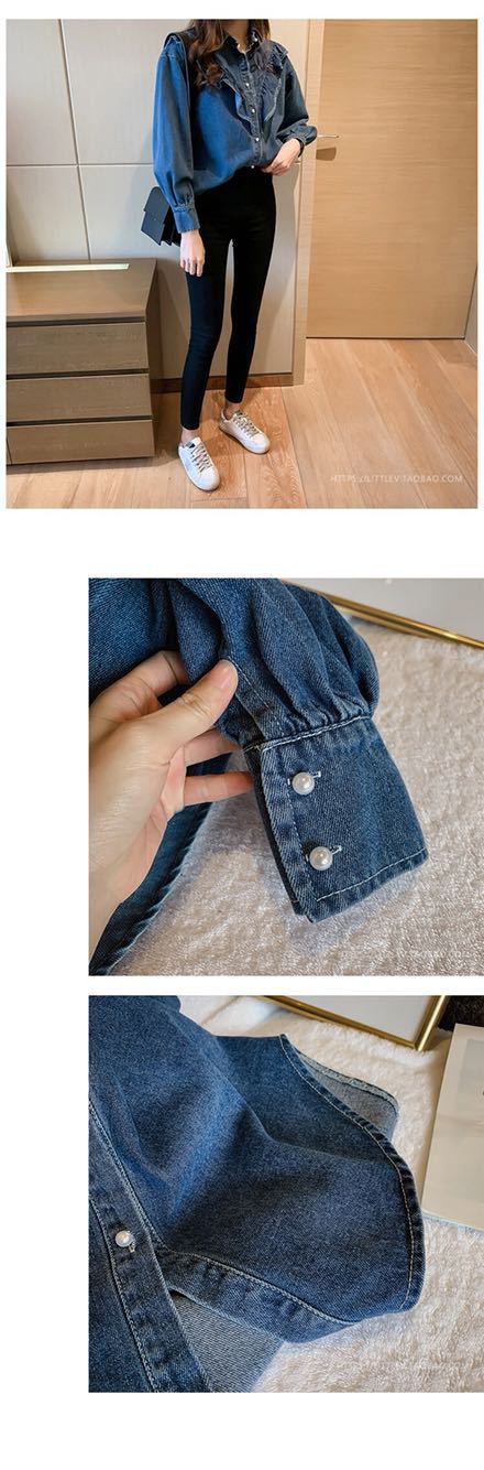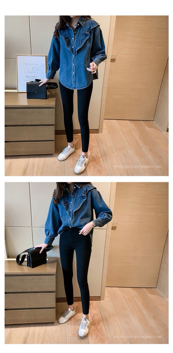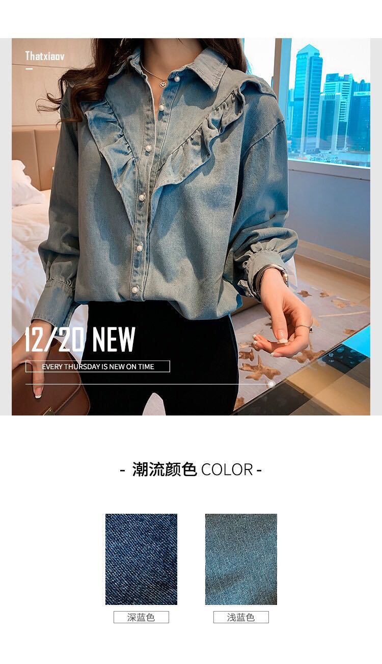 봄 새로운 한국 스타일 달콤한 러플 데님 셔츠 여성의 느슨한 슬리밍 긴팔 탑 트렌디베이스 셔츠스토어 가기