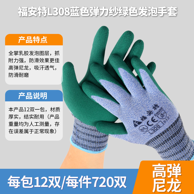 • Fuante L308 블루 스트레치 원사 녹색 거품 장갑