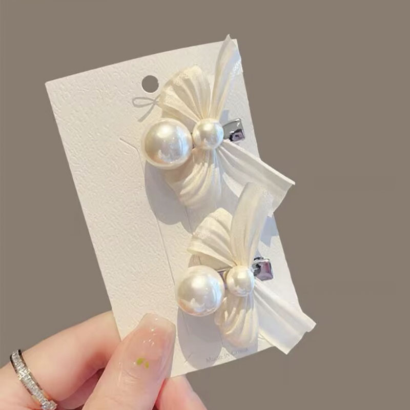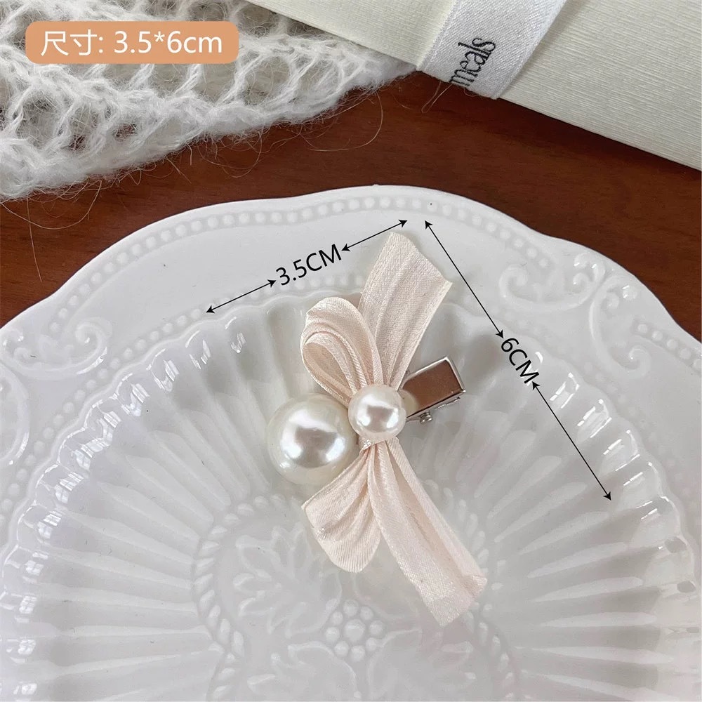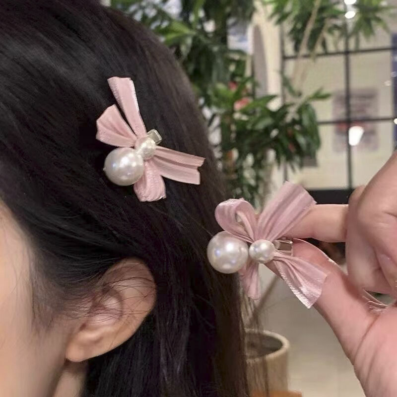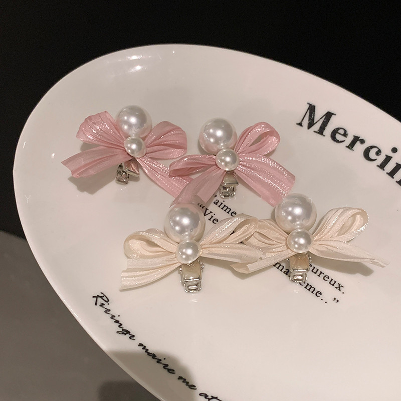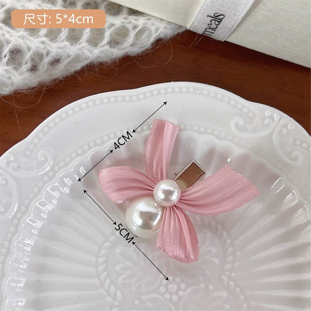 달콤한 진주 핑크 활 머리핀 여성 우아한 하이 엔드 사이드 뱅 클립 머리 주소 공주 헤어 액세서리