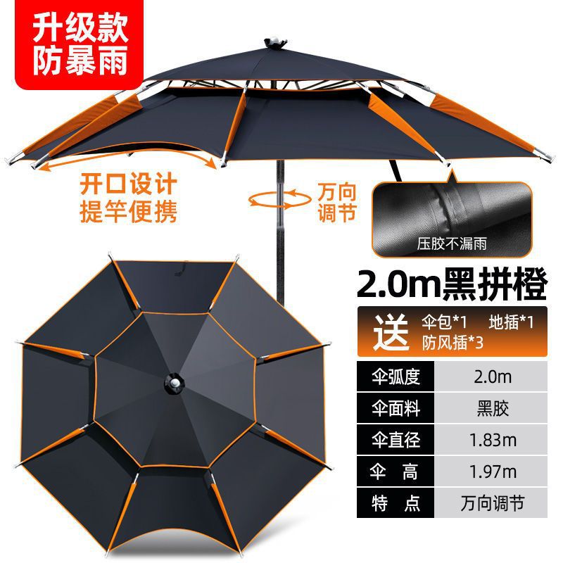 두꺼운 검은 고무 낚시 우산 2.6 미터 폭풍우 낚시 우산 2.4 두꺼운 선 스크린 우산 생선 우산 차양 우산 도매스토어 가기