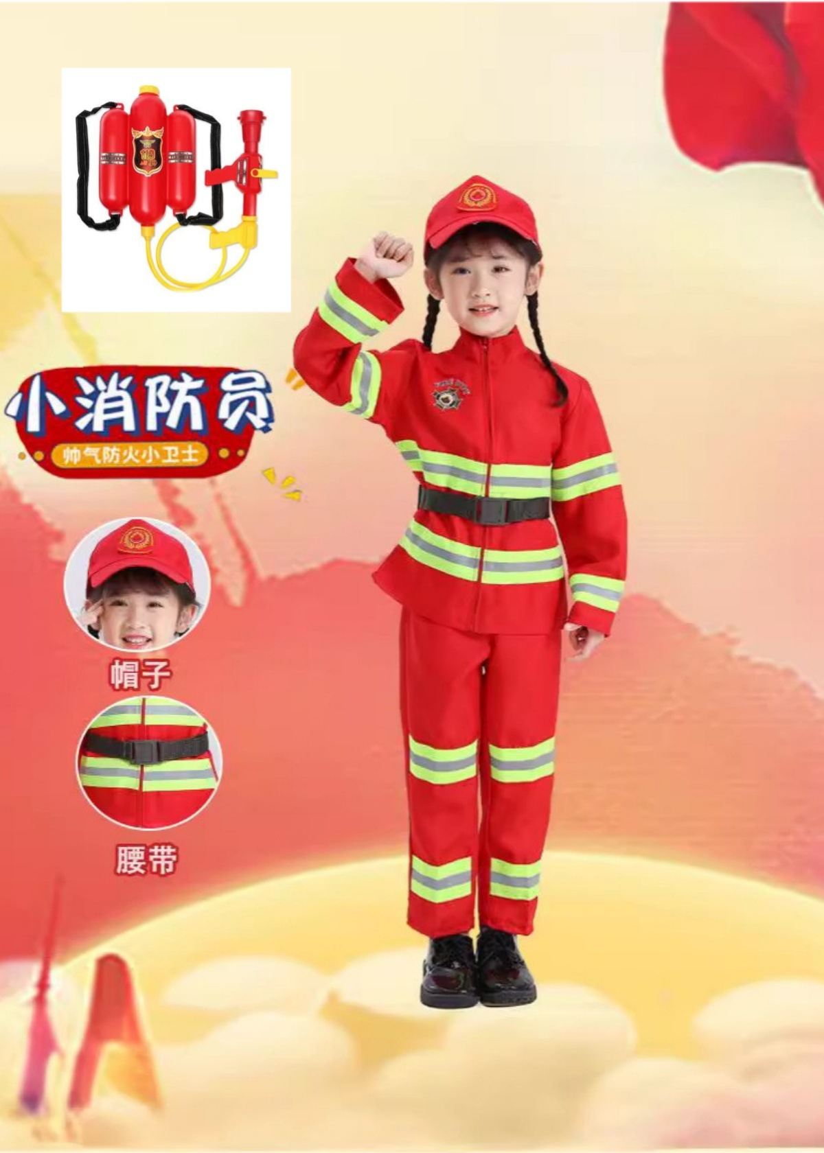 • 소방 의류 벨트 배낭 물 총 소방 헬멧