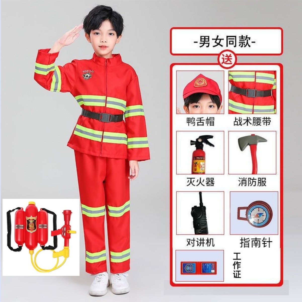 어린이 위장 소방관 어린이 직업 체험 공연 의상 세트 롤플레잉 활동 캣워크