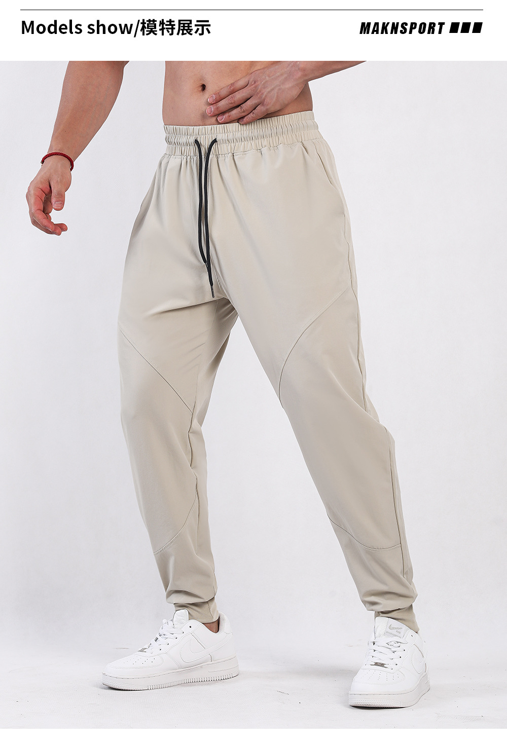 2024 캐주얼 남성 바지 통기성 편안한 얇은 여름 바느질 다리 아이스 실크 바지 소스 새로운 공장화물 전달