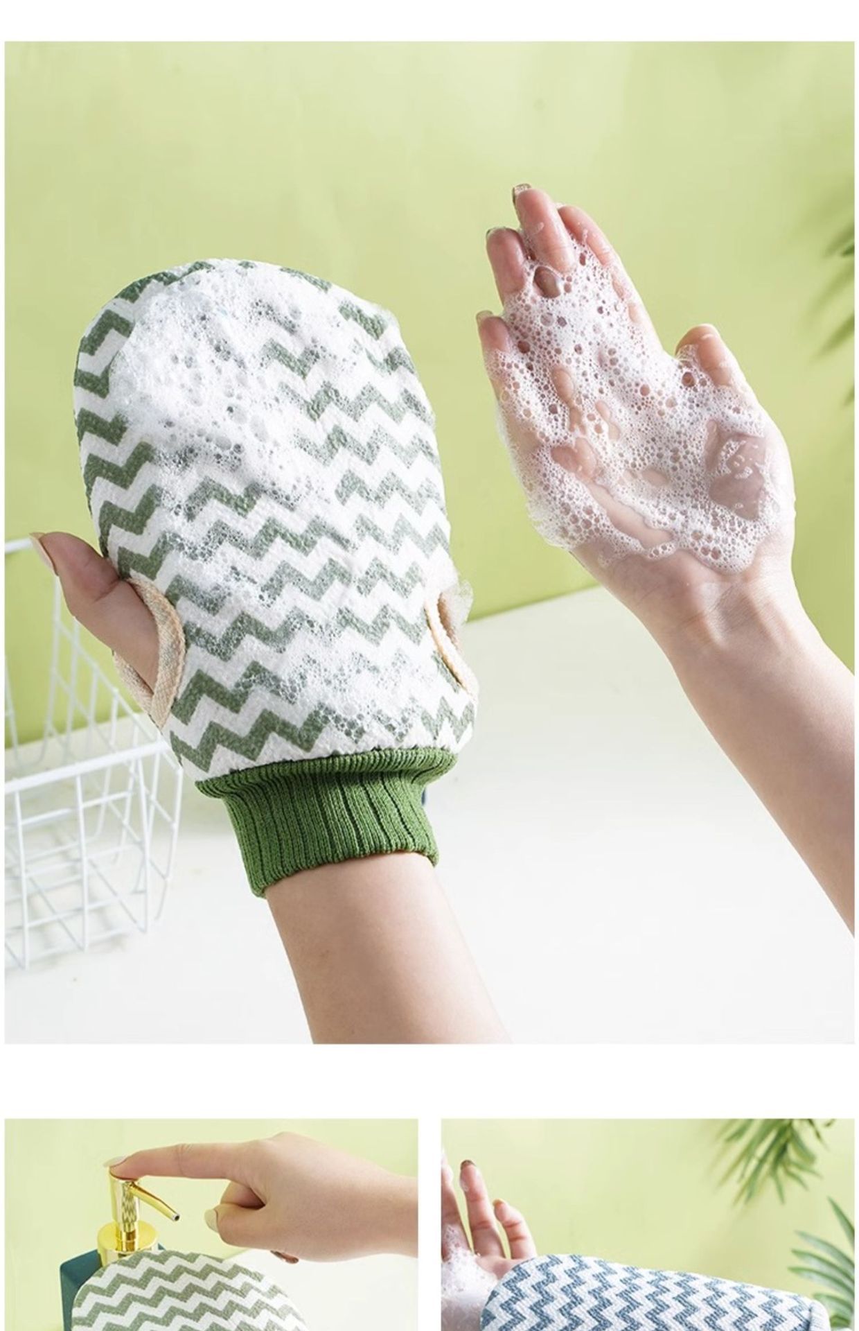 여성용 강력한 진흙 제거 및 오염 제거 두꺼운 양면 성인 남성 목욕 가정용 등 마사지 장갑