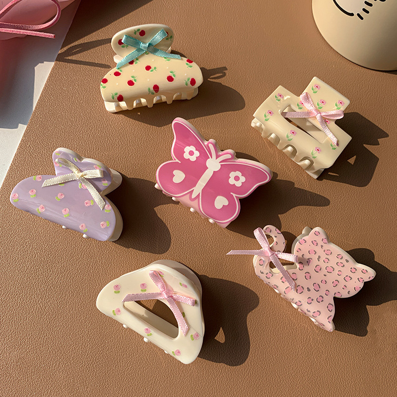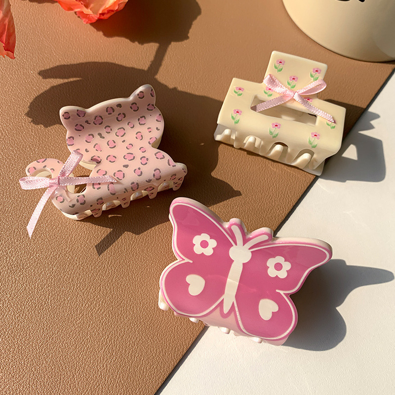 귀여운 달콤한 활 꽃 고양이 작은 잡아 클립 우아하고 기질 상어 클립 고급 감각 헤어핀 헤어 액세서리