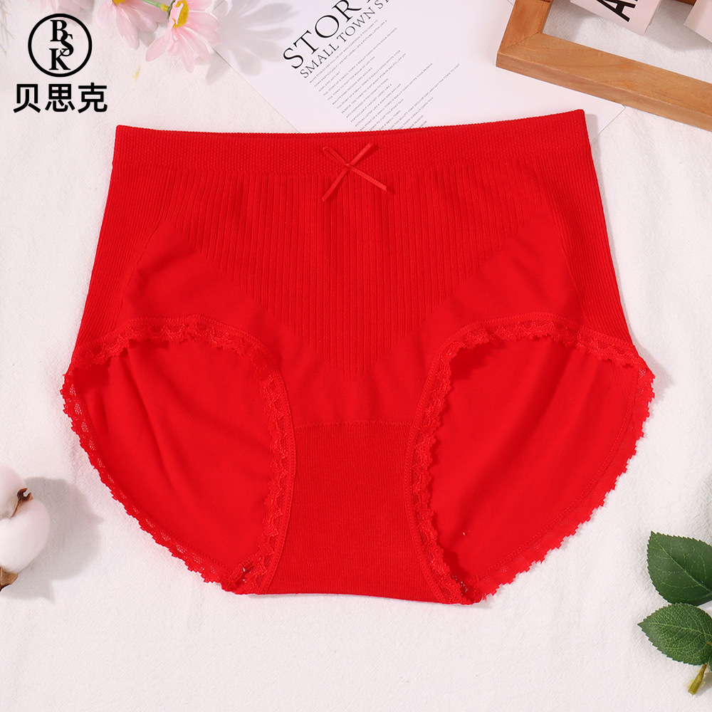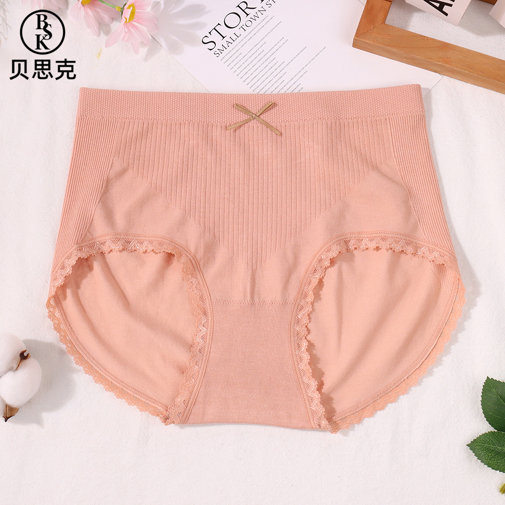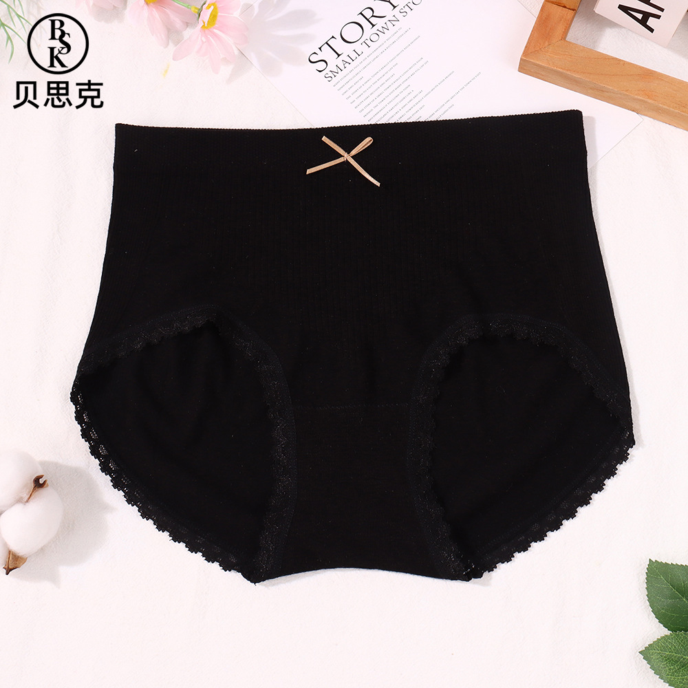 Baske 솔리드 컬러 보우 팬티 여성 2025 미드 웨이스트 심리스 코튼 바닥 배꼽 컨트롤 엉덩이 리프팅 삼각형 반바지스토어 가기