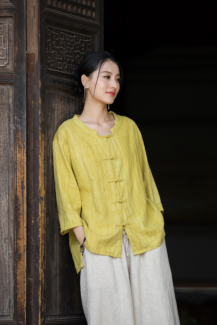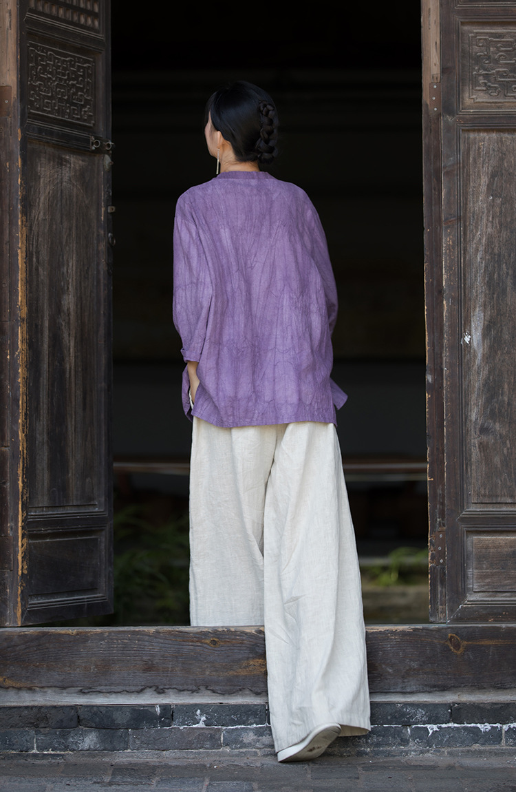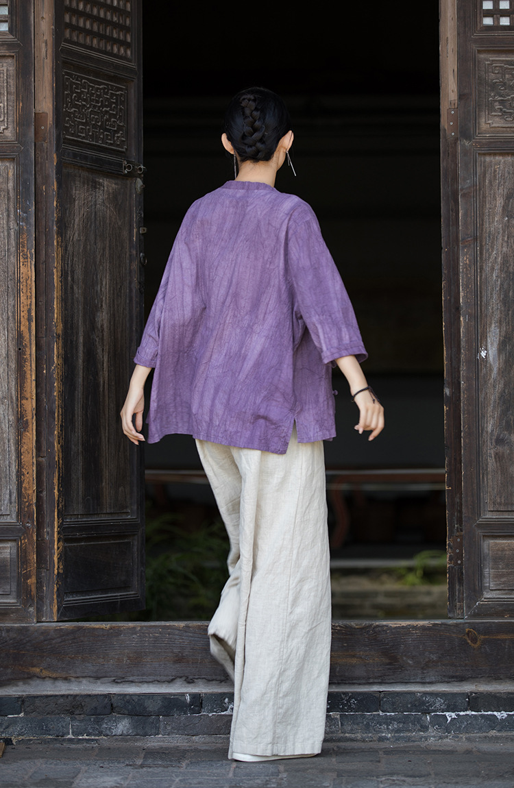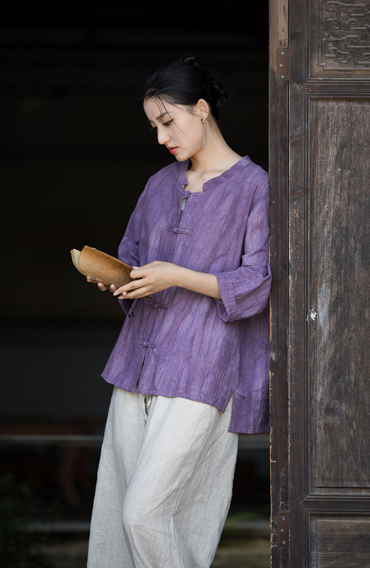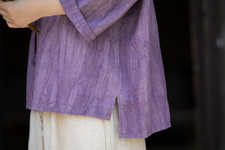 24 여름 면화 및 리넨 여성 의류 새로운 수제 넥타이 염색 수직 칼라 버튼 블라우스 새로운 중국 스타일 아름다운 카디건 선 스크린 아우터웨어스토어 가기