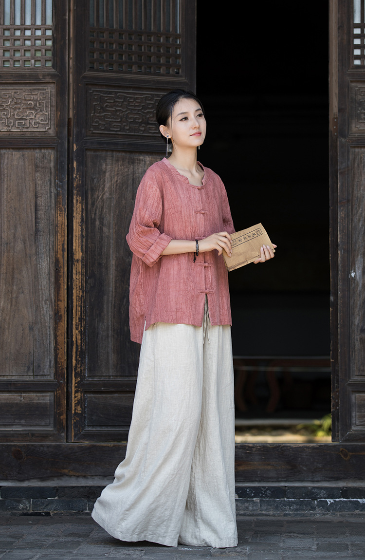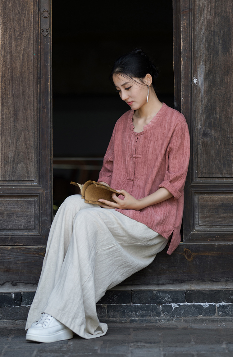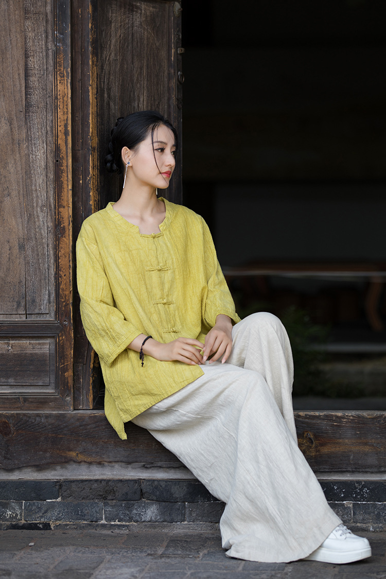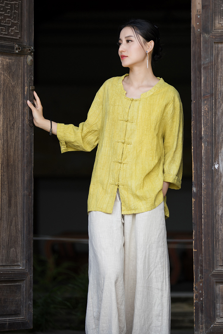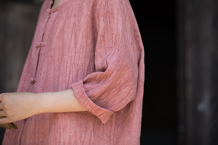24 여름 면화 및 리넨 여성 의류 새로운 수제 넥타이 염색 수직 칼라 버튼 블라우스 새로운 중국 스타일 아름다운 카디건 선 스크린 아우터웨어스토어 가기