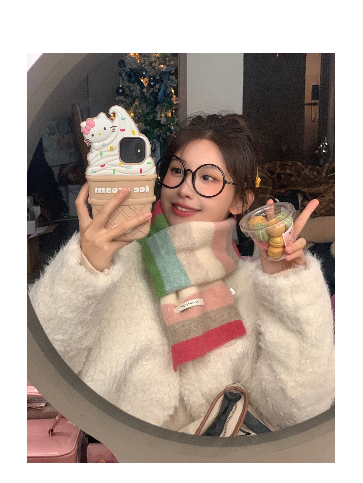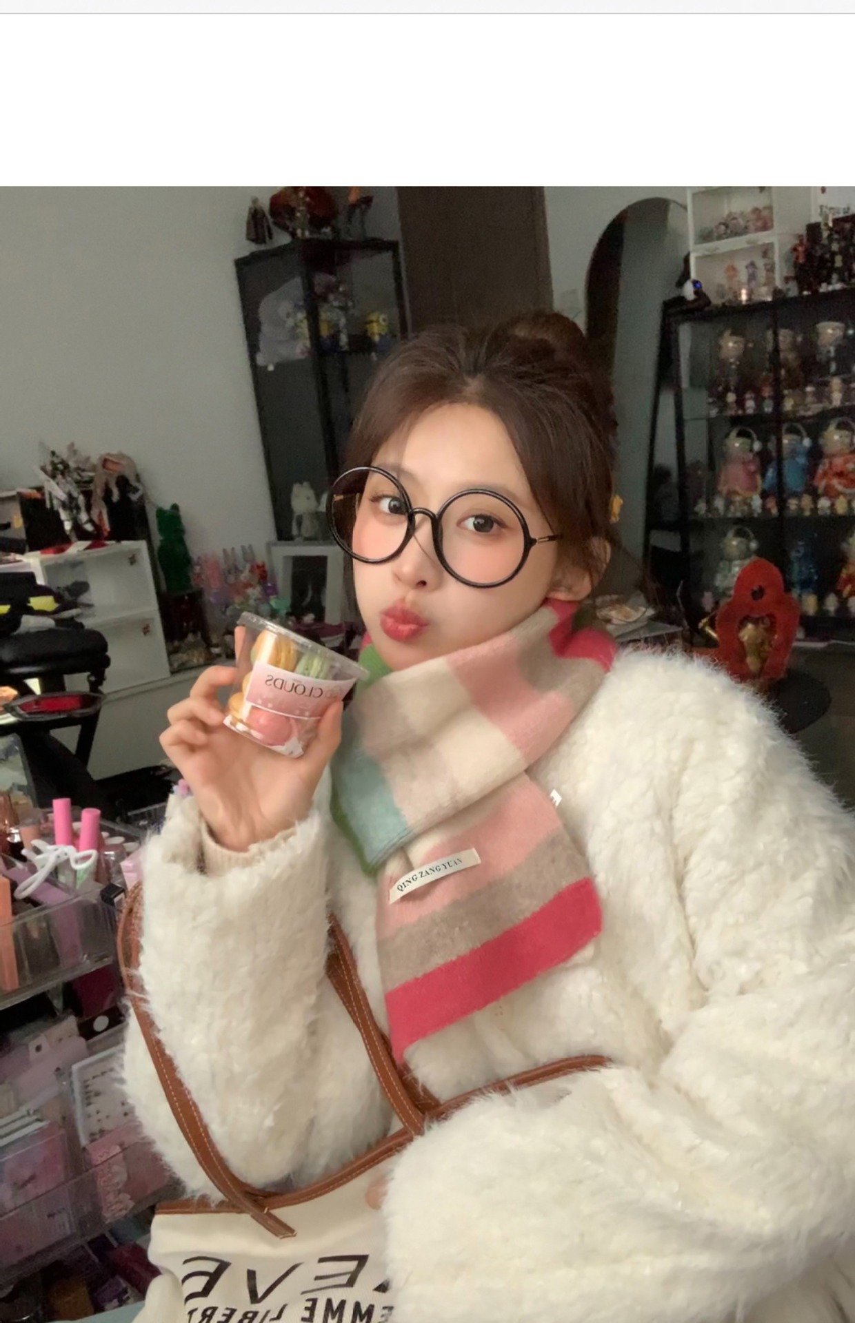양모 새 레인보우 스카프 여성 가을 · 겨울 한국식 올매치 귀여운 소녀 목 보호 스카프 학생용스토어 가기