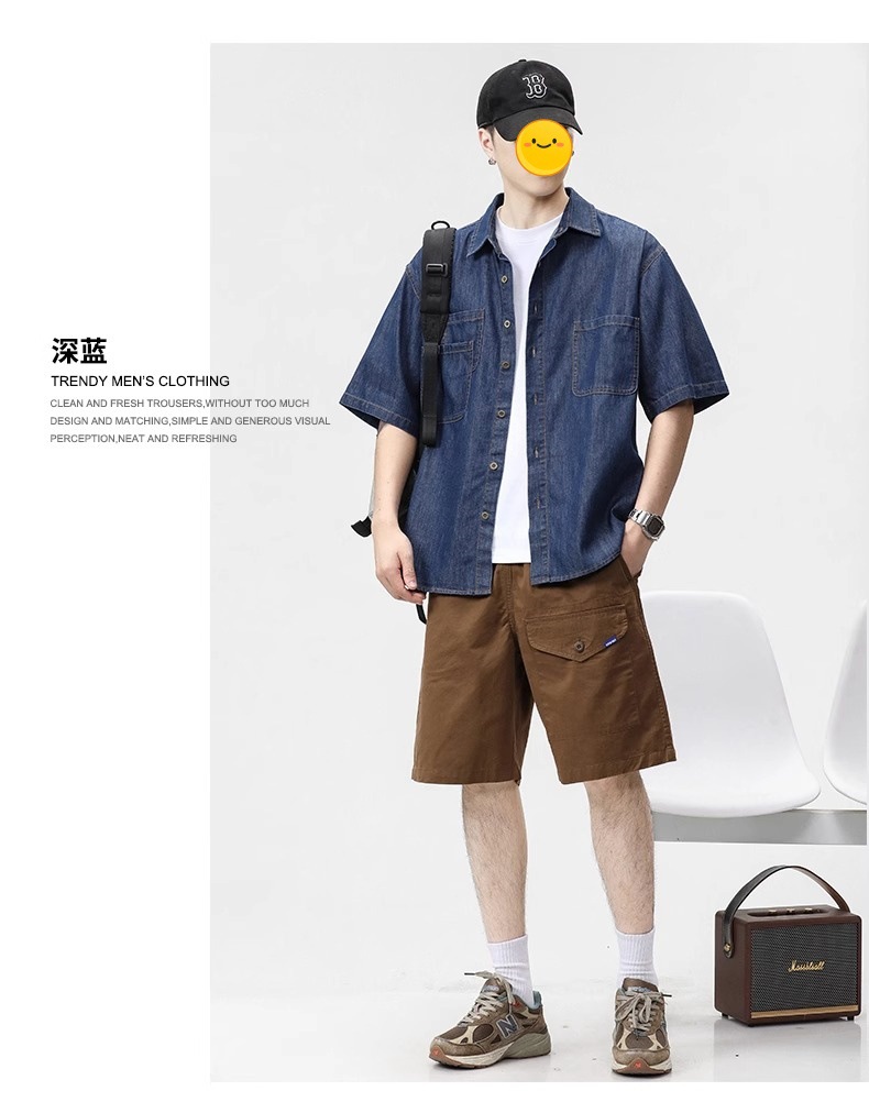 디자인 센스 포켓 데님 셔츠 남자의 반팔 2024 여름 유행 느슨한 플러스 사이즈 탑 얇은 셔츠 재킷스토어 가기