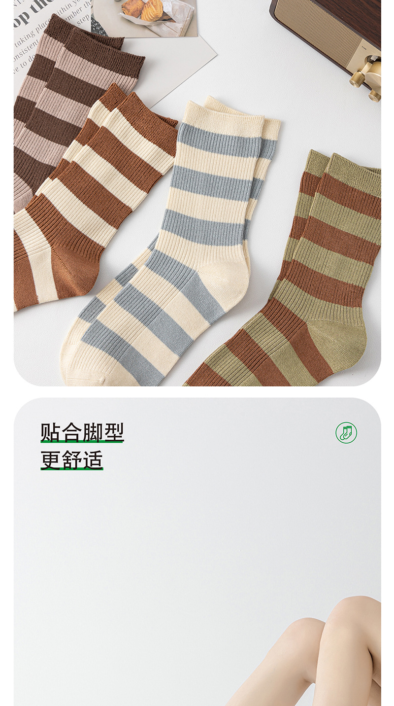양말 여성의 가을 및 겨울 Ins 품질 줄무늬 여성용 중장 양말 일본식 대비 캐주얼 양말 고급 누에 스타킹