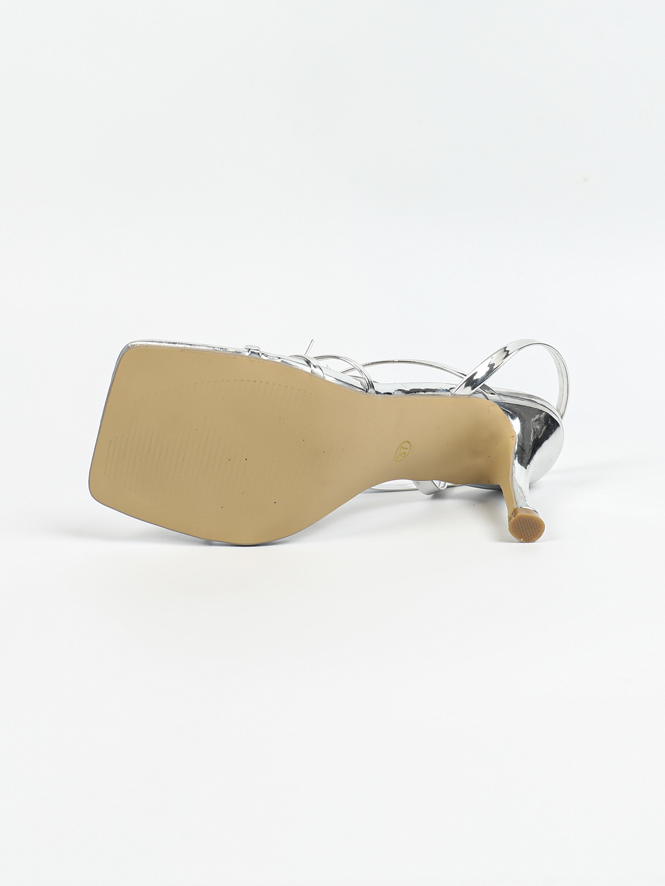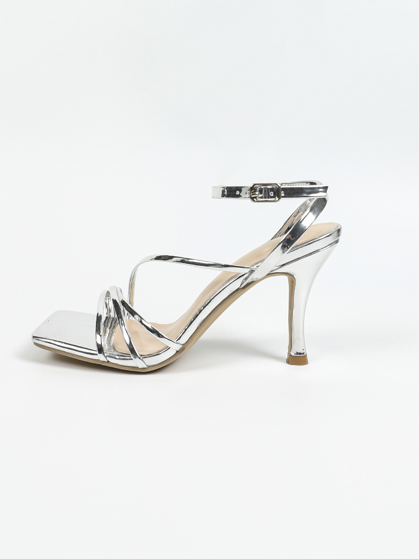 161-268 유럽 및 미국 국경 여성 하이힐 샌들 실버 스퀘어 토 얇은 힐 오픈 토 버클 패션 조커