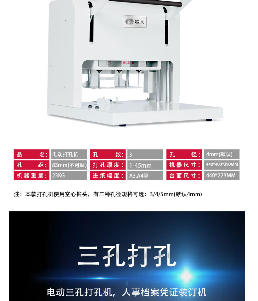 Gepai GP-ZK450 전기 3 홀 드릴 펀칭 기계 파일 인원 바인딩 기계 3 개의 구멍