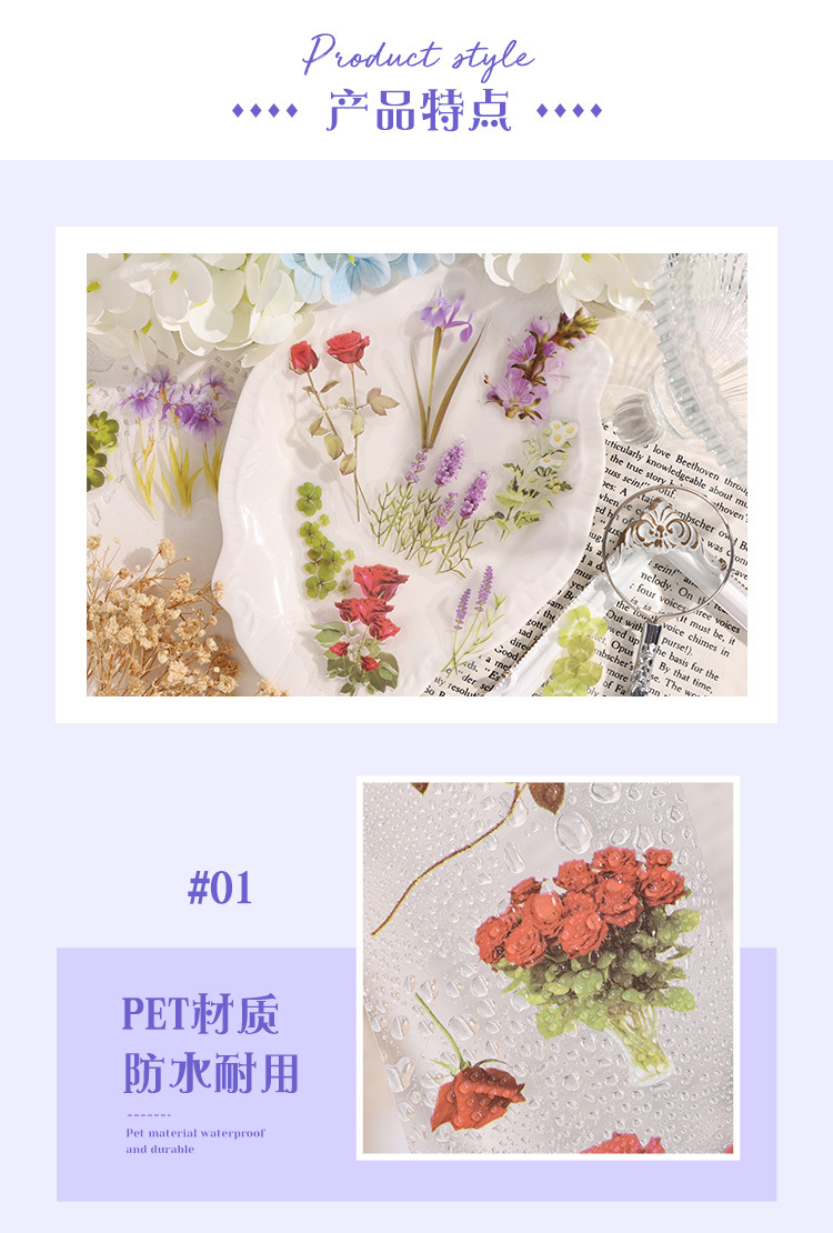 피칭 자세 투명 방수 애완 동물 테이프 diy 손 계정 일일 일기 조경 재료 식물 꽃 문구 스티커스토어 가기