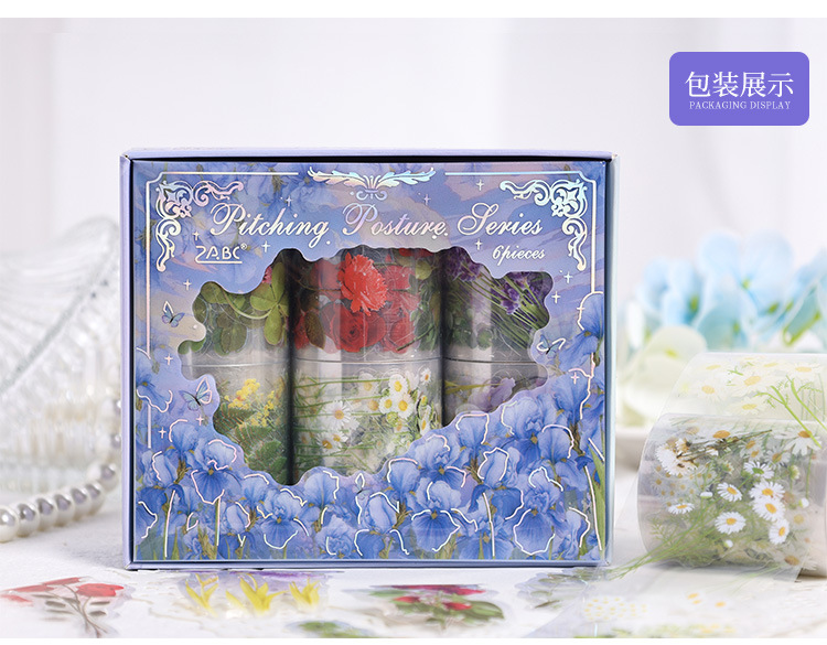피칭 자세 투명 방수 애완 동물 테이프 diy 손 계정 일일 일기 조경 재료 식물 꽃 문구 스티커