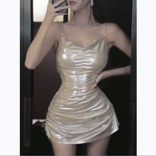유행 스파이스 소녀 밝은 얼굴 슬링 힙합 가방 원피스 패션 새로운 여성의 섹시한 순수한 욕망 스타일 드로스트링 짧은 치마스토어 가기