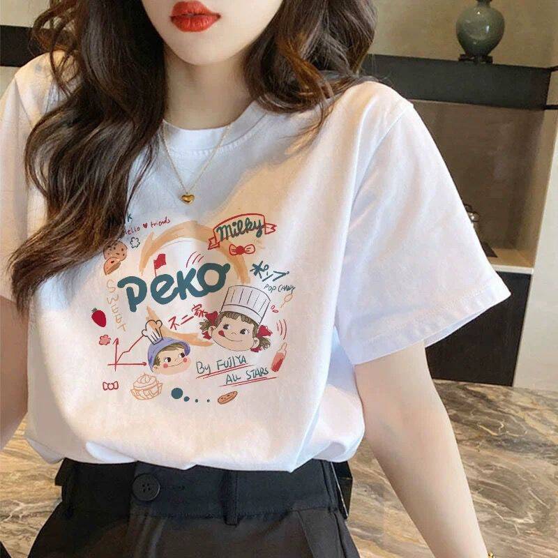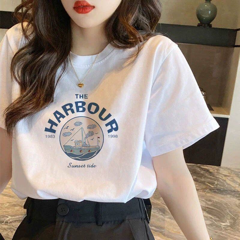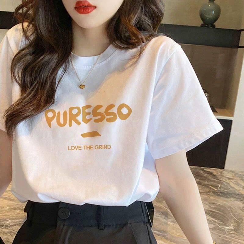 순수 코튼 반팔 티셔츠 여성 플러스 사이즈 여름 신작 여성 루즈 슬림 화이트 티셔츠 탑 보텀 셔츠 ins 트렌드스토어 가기