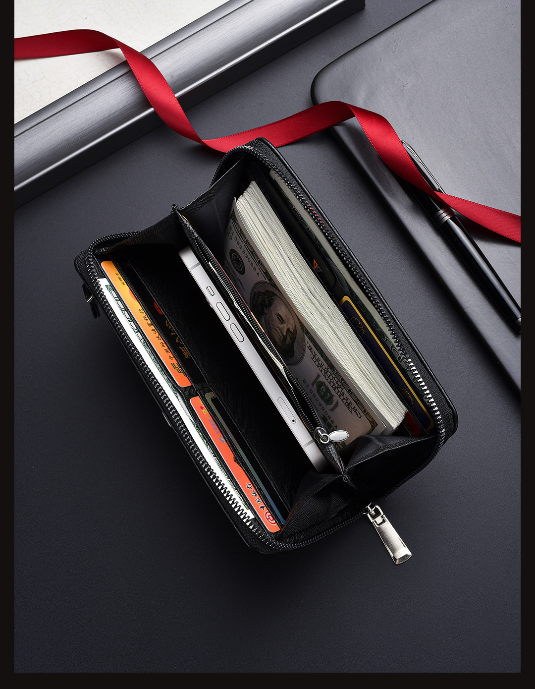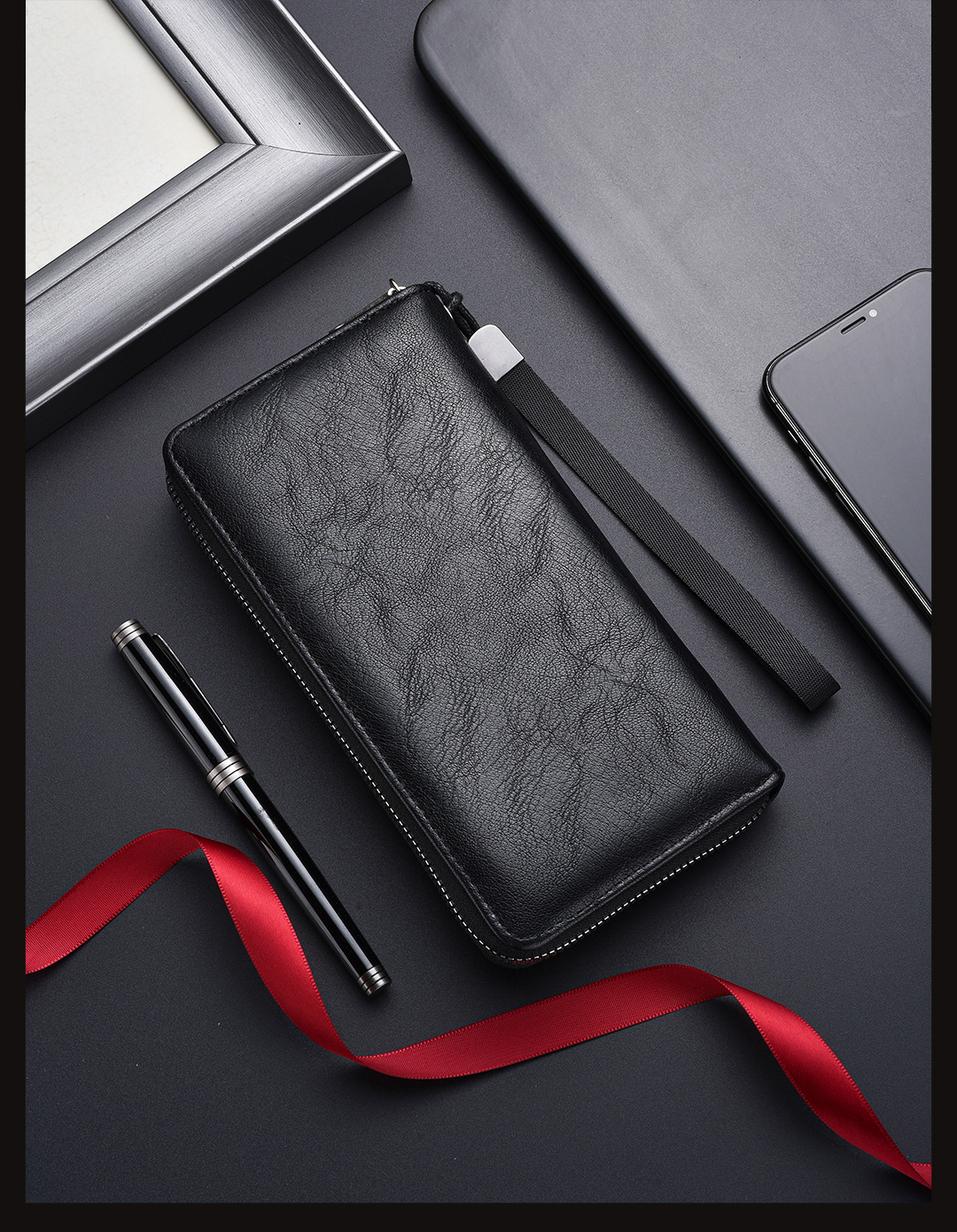 새로운 남성용 긴 지갑 외장 카드 드로우 백 남성용 클러치 백 소프트 가죽 지퍼 청소년 패션 클러치 백 휴대 전화 가방