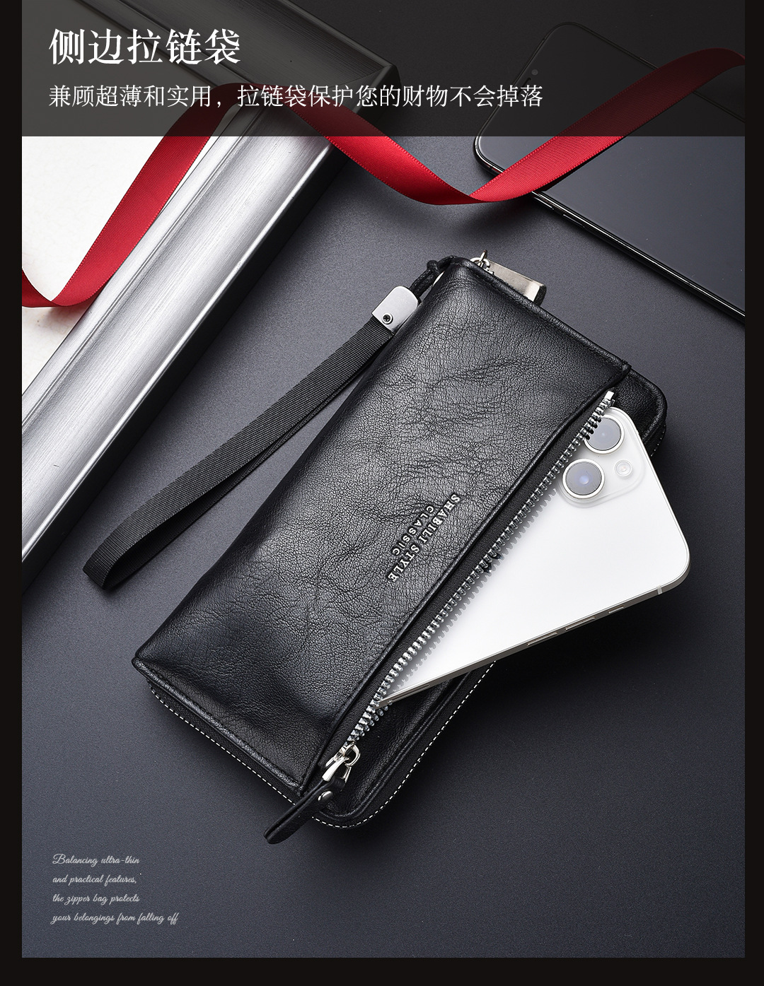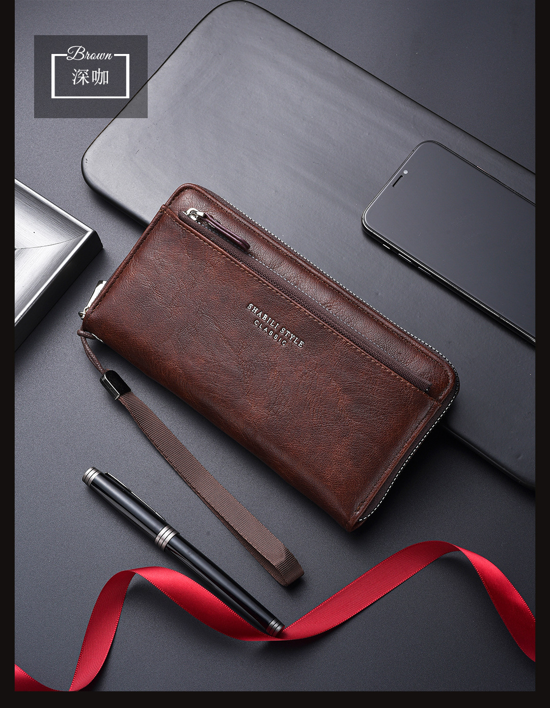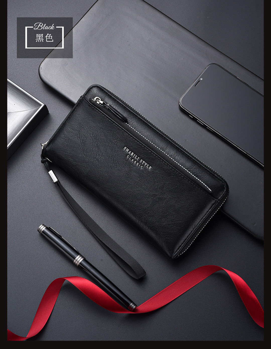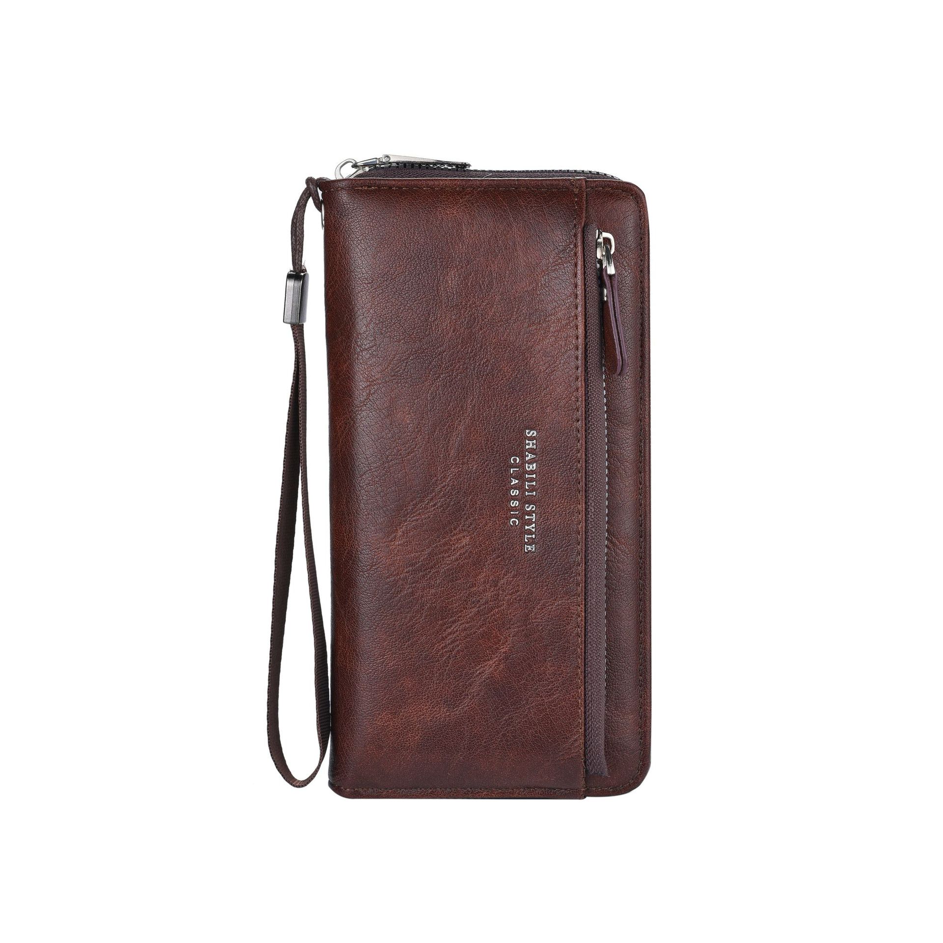 새로운 남성용 긴 지갑 외장 카드 드로우 백 남성용 클러치 백 소프트 가죽 지퍼 청소년 패션 클러치 백 휴대 전화 가방스토어 가기