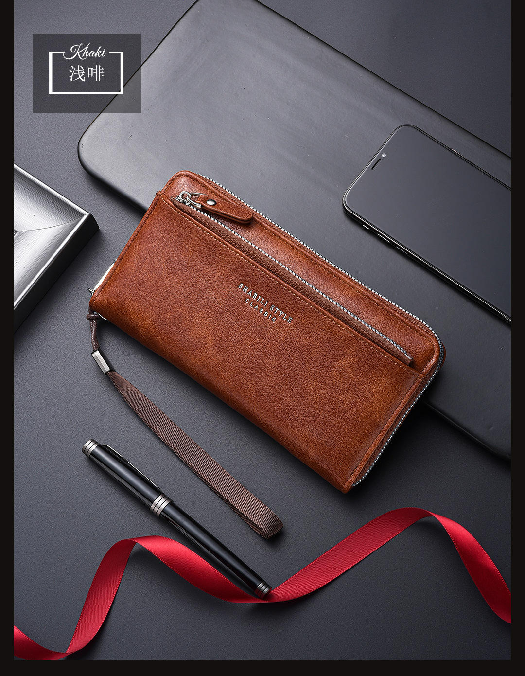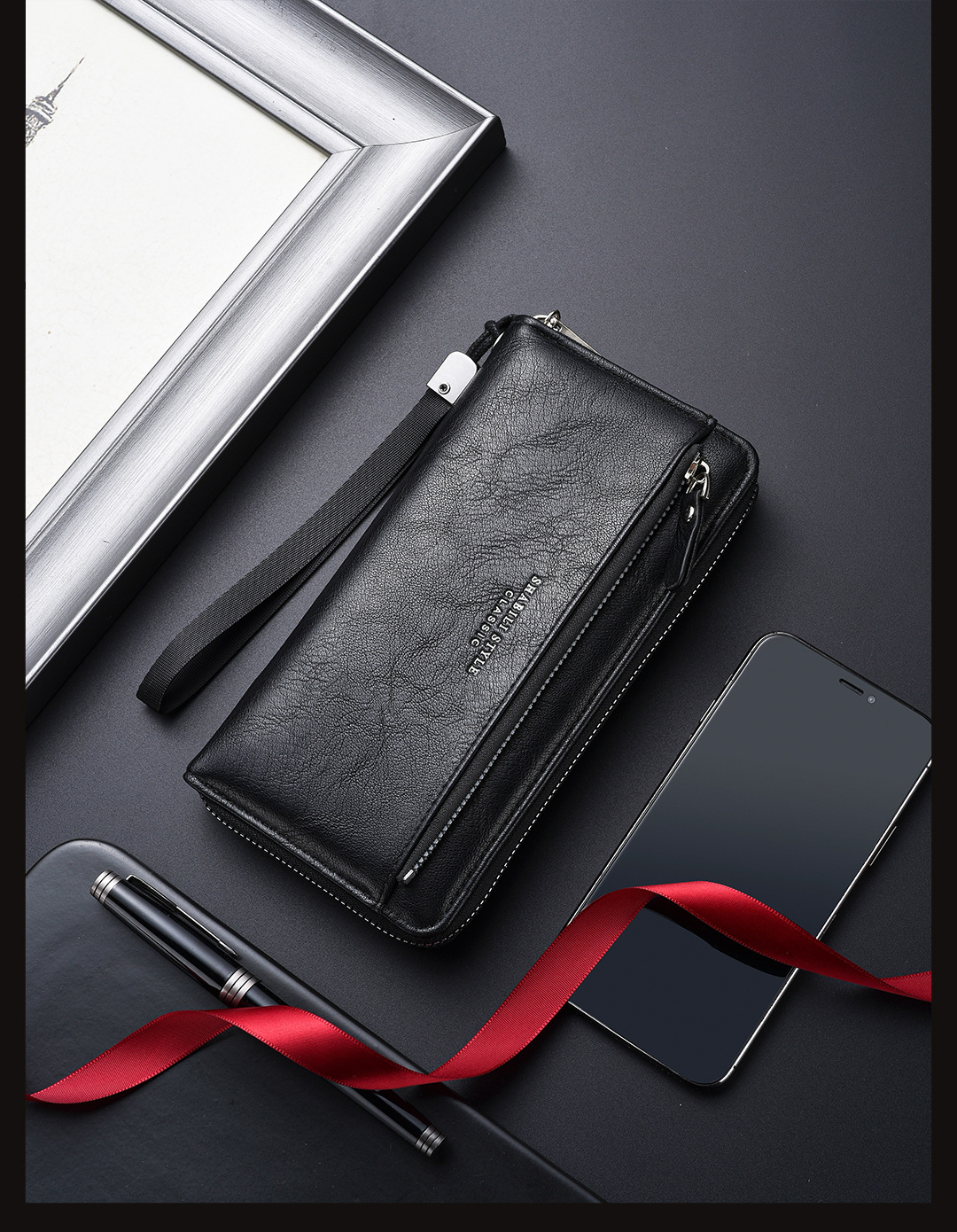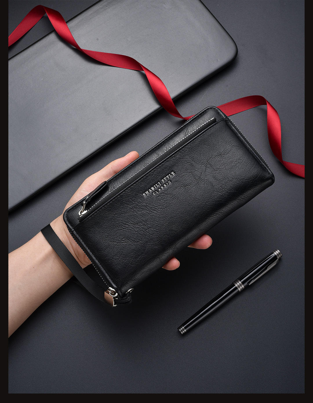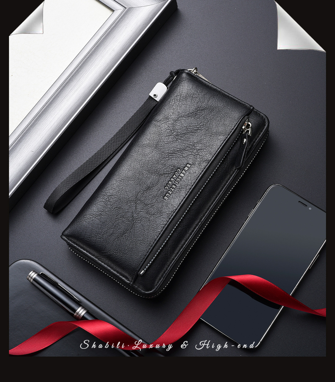 새로운 남성용 긴 지갑 외장 카드 드로우 백 남성용 클러치 백 소프트 가죽 지퍼 청소년 패션 클러치 백 휴대 전화 가방스토어 가기
