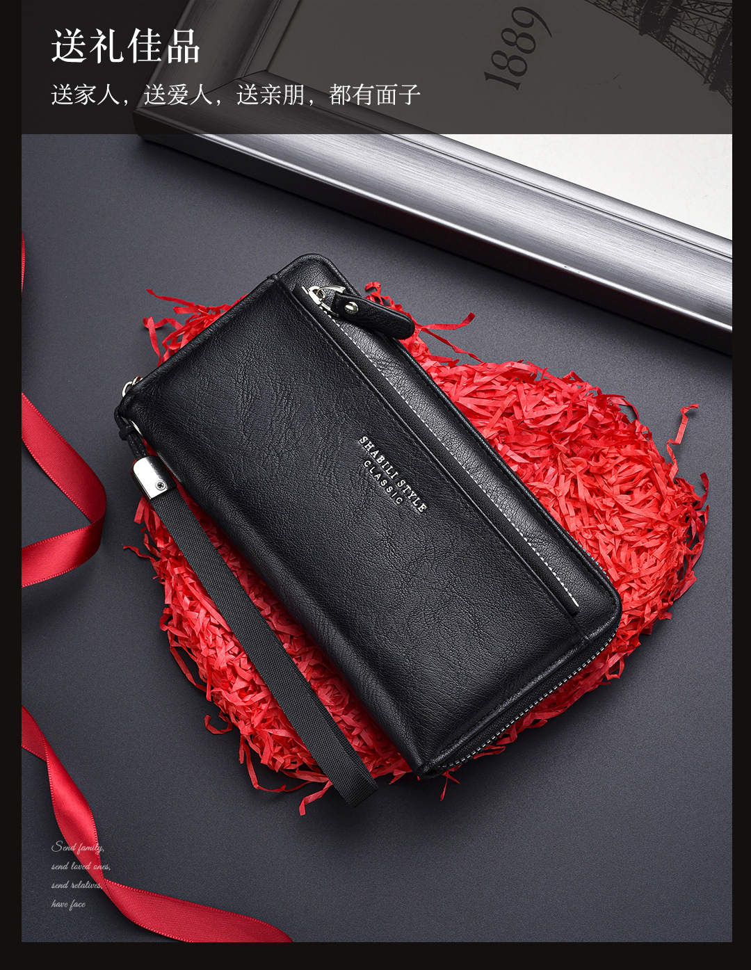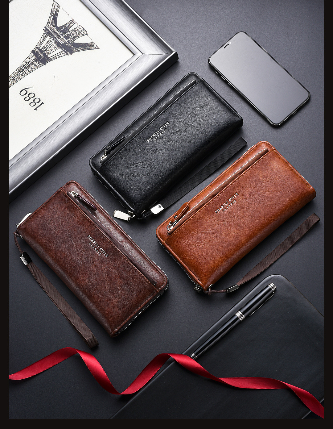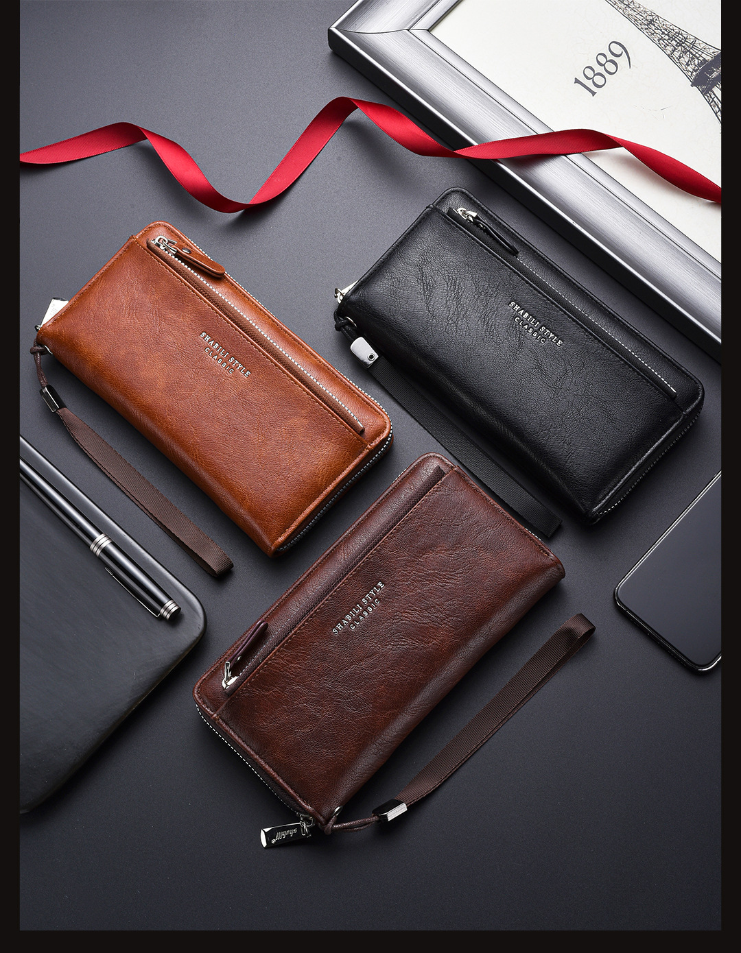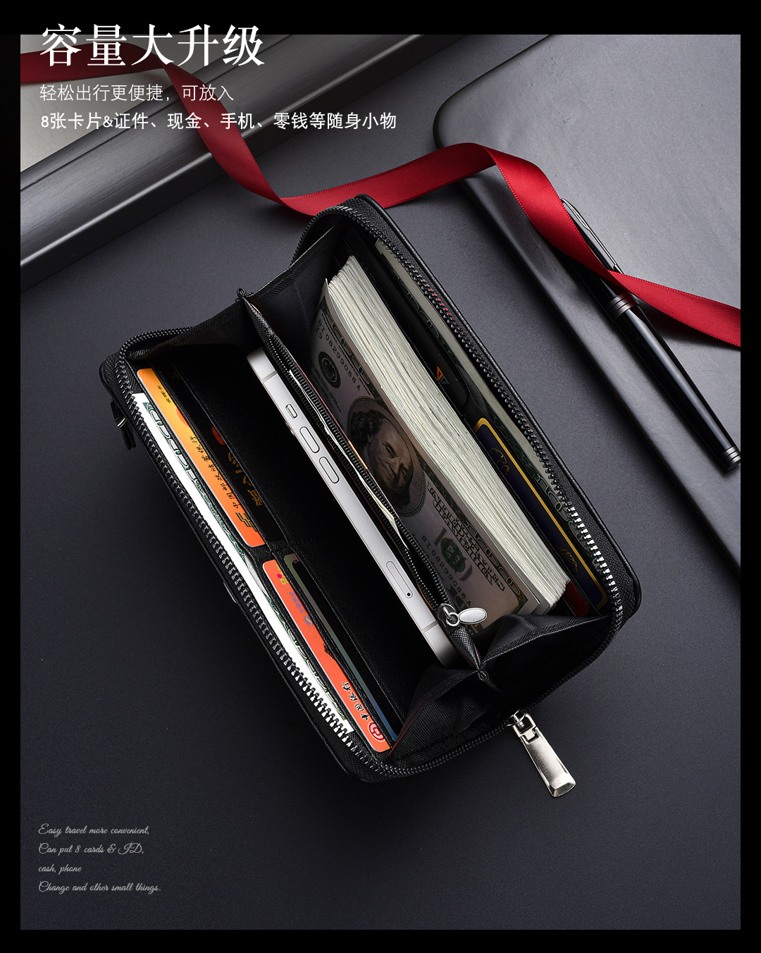 새로운 남성용 긴 지갑 외장 카드 드로우 백 남성용 클러치 백 소프트 가죽 지퍼 청소년 패션 클러치 백 휴대 전화 가방스토어 가기