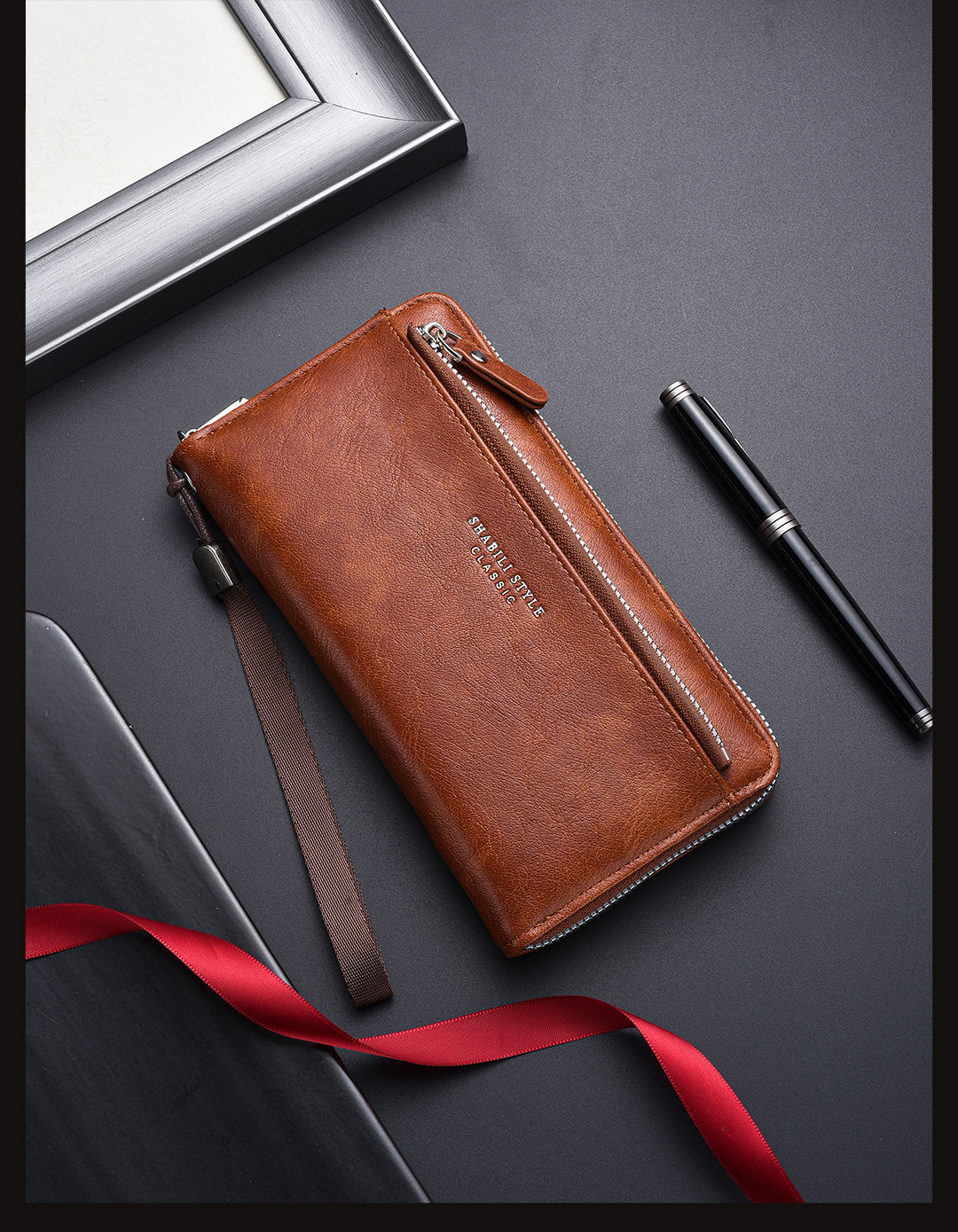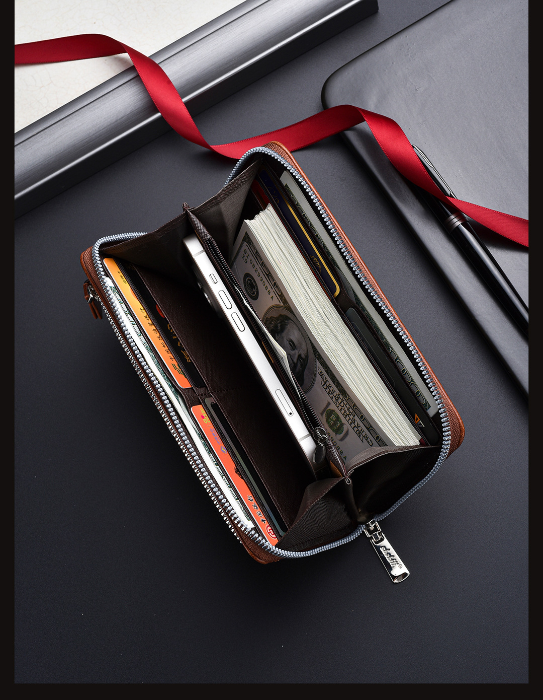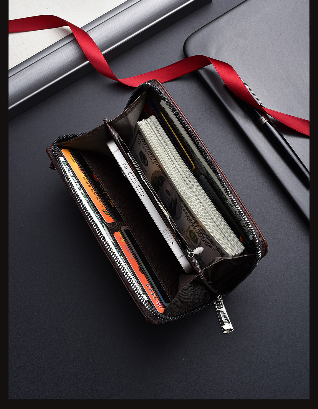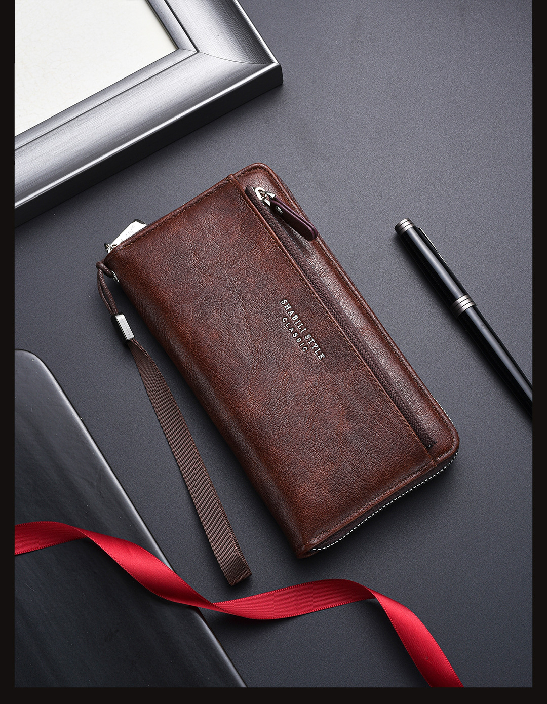 새로운 남성용 긴 지갑 외장 카드 드로우 백 남성용 클러치 백 소프트 가죽 지퍼 청소년 패션 클러치 백 휴대 전화 가방스토어 가기