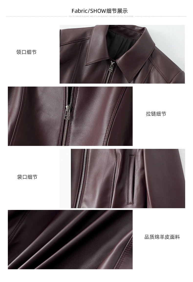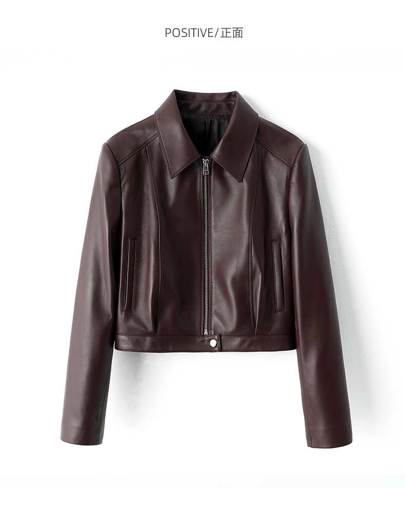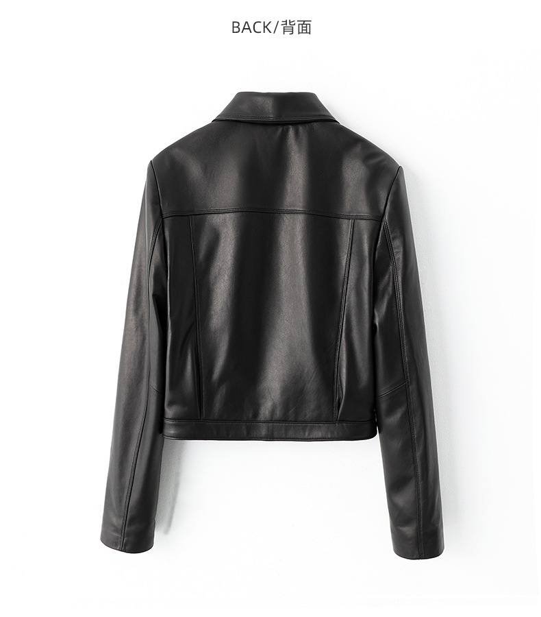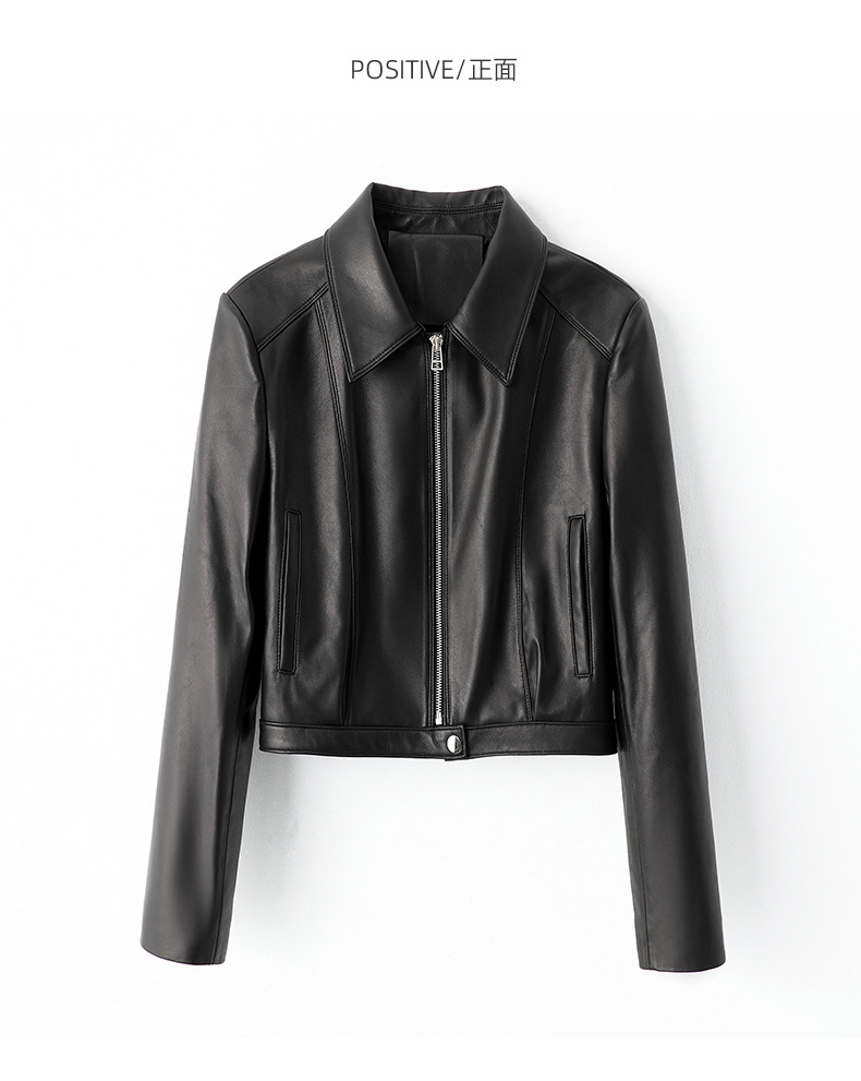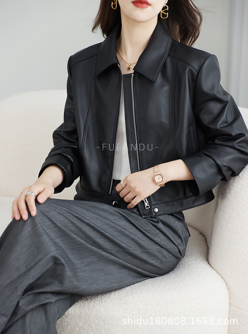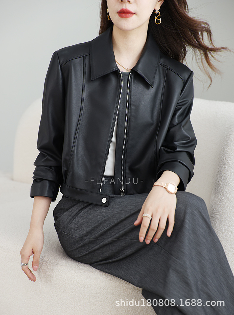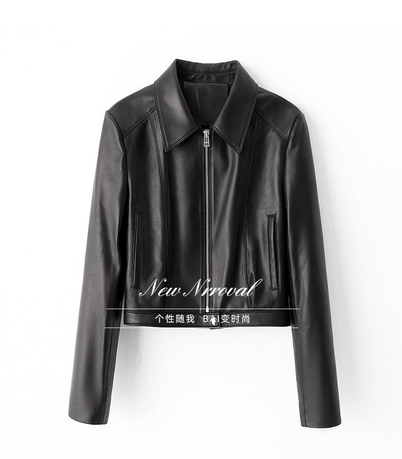 Haining 봄과 가을 새로운 여성 지퍼 오토바이 가죽 코트 라펠 블랙 양피 정품 가죽 자켓 짧은 가죽 코트스토어 가기