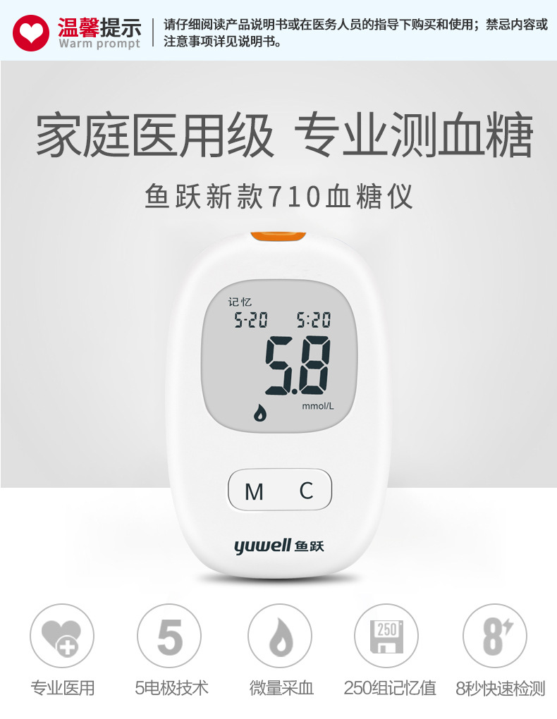 물고기 도약 혈당 테스트 종이 710 테스터 가정용 고정밀 테스트 스트립 혈당 측정기스토어 가기