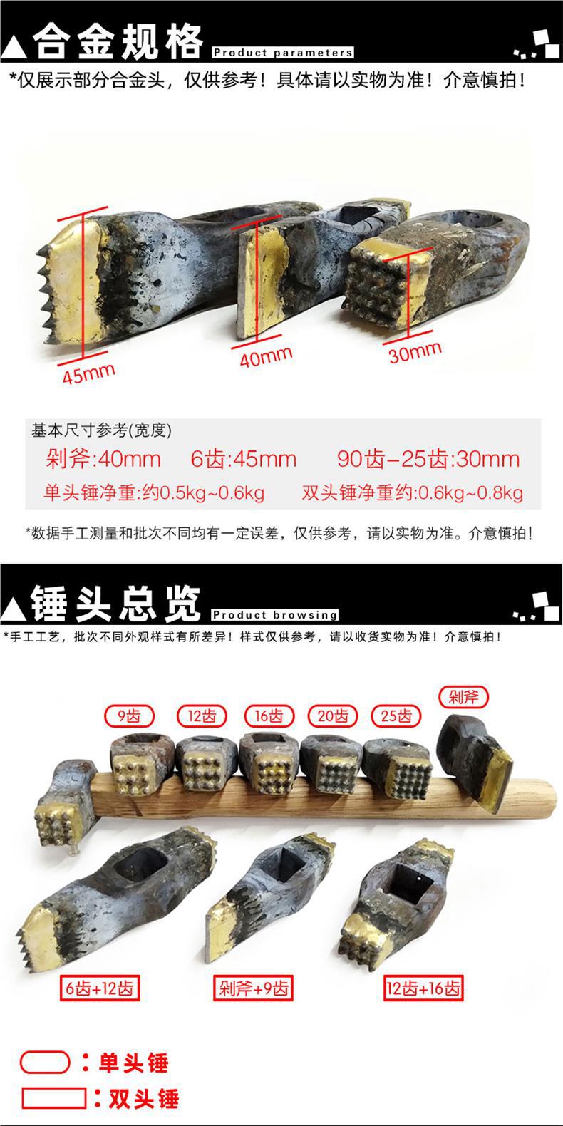 수제 합금 끌망치 망치 화강암 콘크리트 석재 수리 litchi 표면 주머니 표면 다진 도끼 양두 꽃 망치스토어 가기