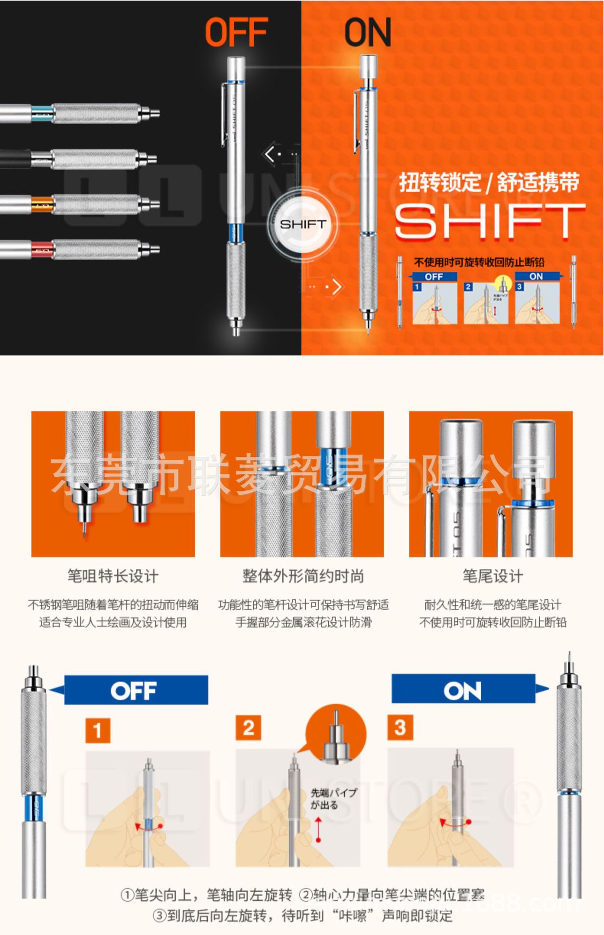 일본 UNI 미쓰비시 M5-1010 자동 드로잉 연필 0.4/0.5mm 낮은 무게 중심 세미 메탈 액티브 라이팅