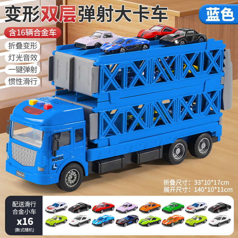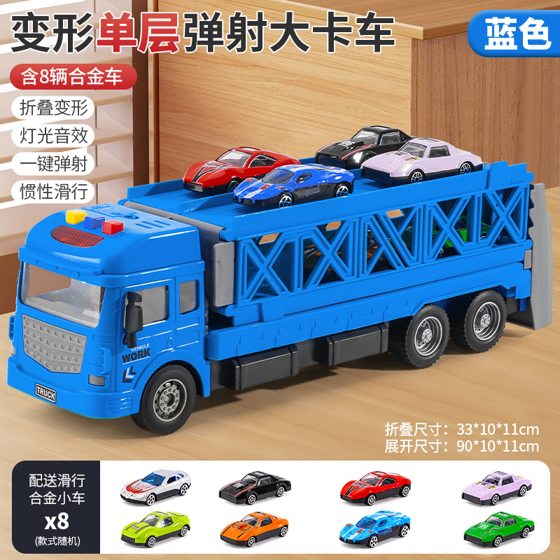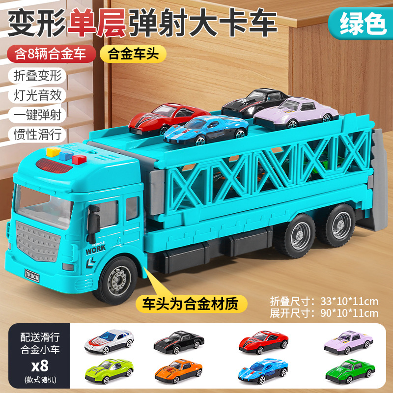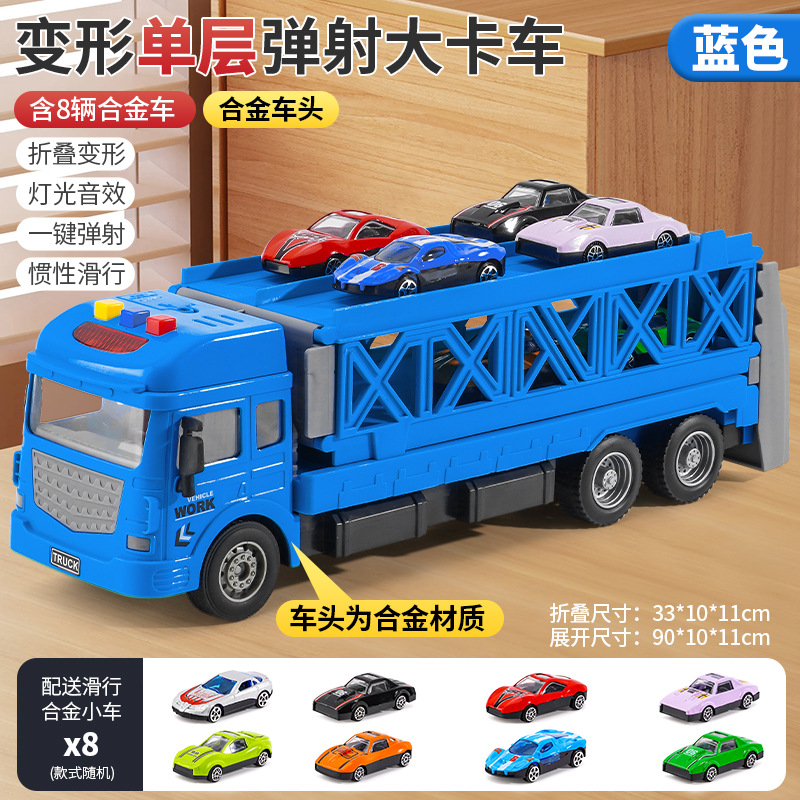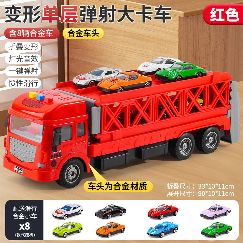 인기 판매 어린이용 변신 합금 장난감 자동차, 헤드밴드 수납 기능과 사운드 효과가 있는 대형 트럭 자동차 모델