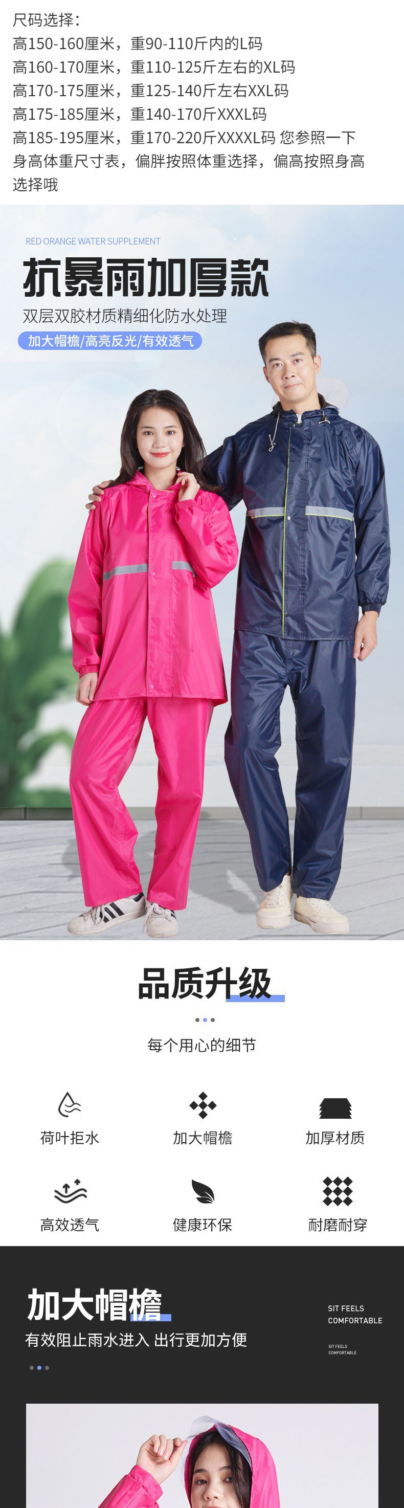 비옷 비 바지 세트 남성과 여성 성인 두꺼운 안티 폭풍우 오토바이 전기 자동차 분할 라이딩 독립 역 판매