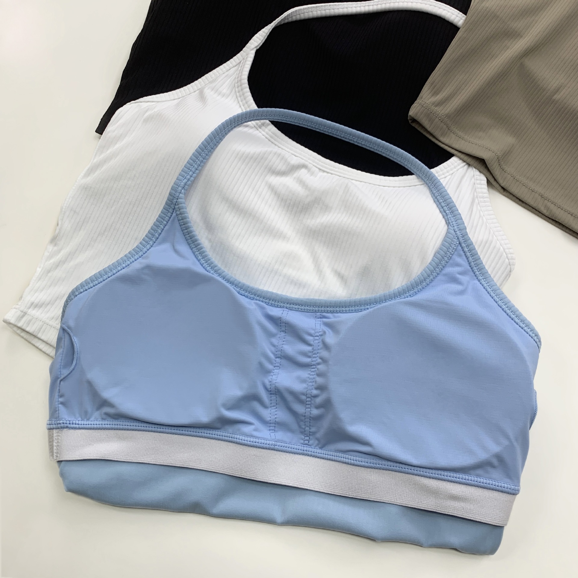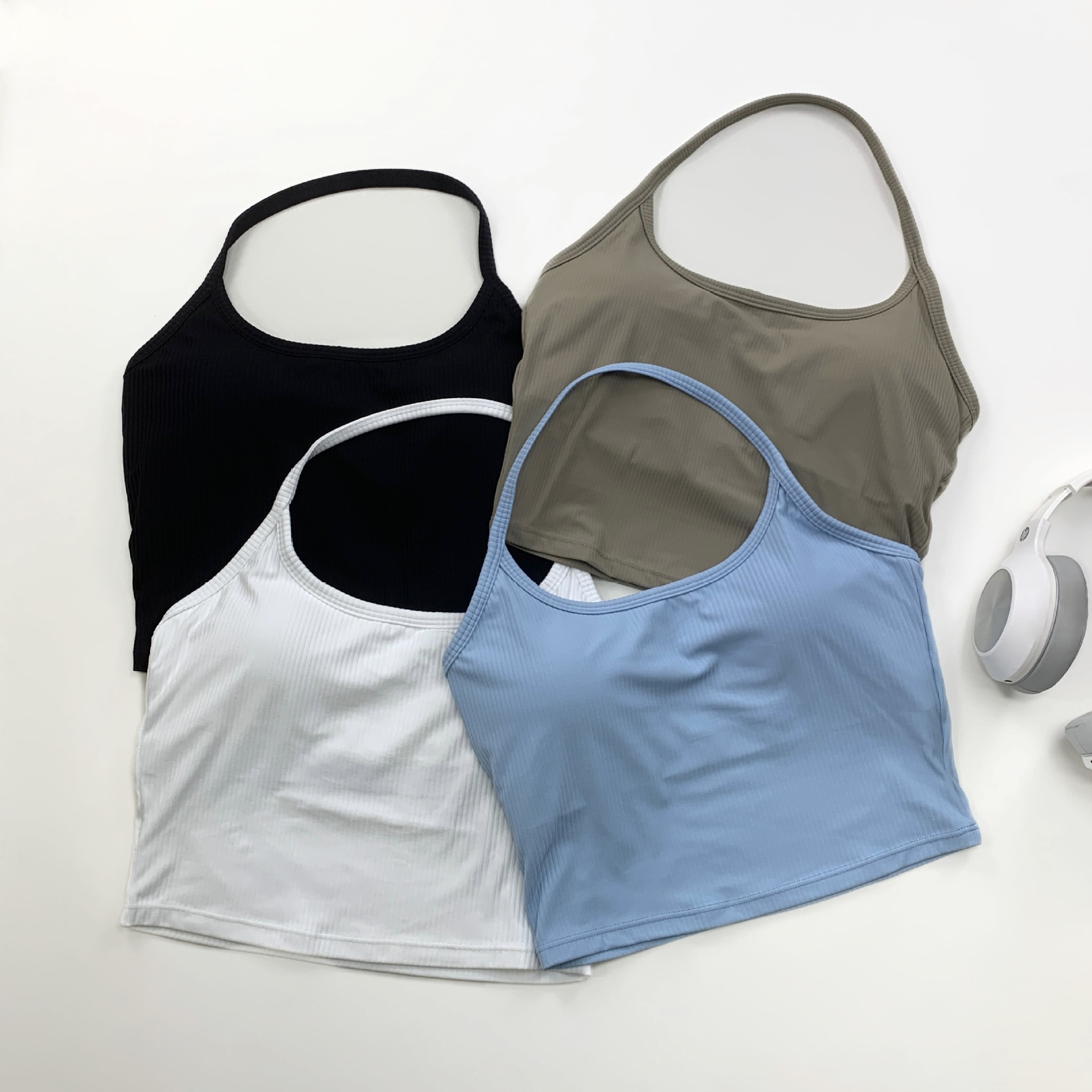 Lulu 얇은 어깨 끈 목 조끼 스포츠 속옷 여성 달리기 피트니스 브래지어 섹시 탑 요가 옷 가슴 패드