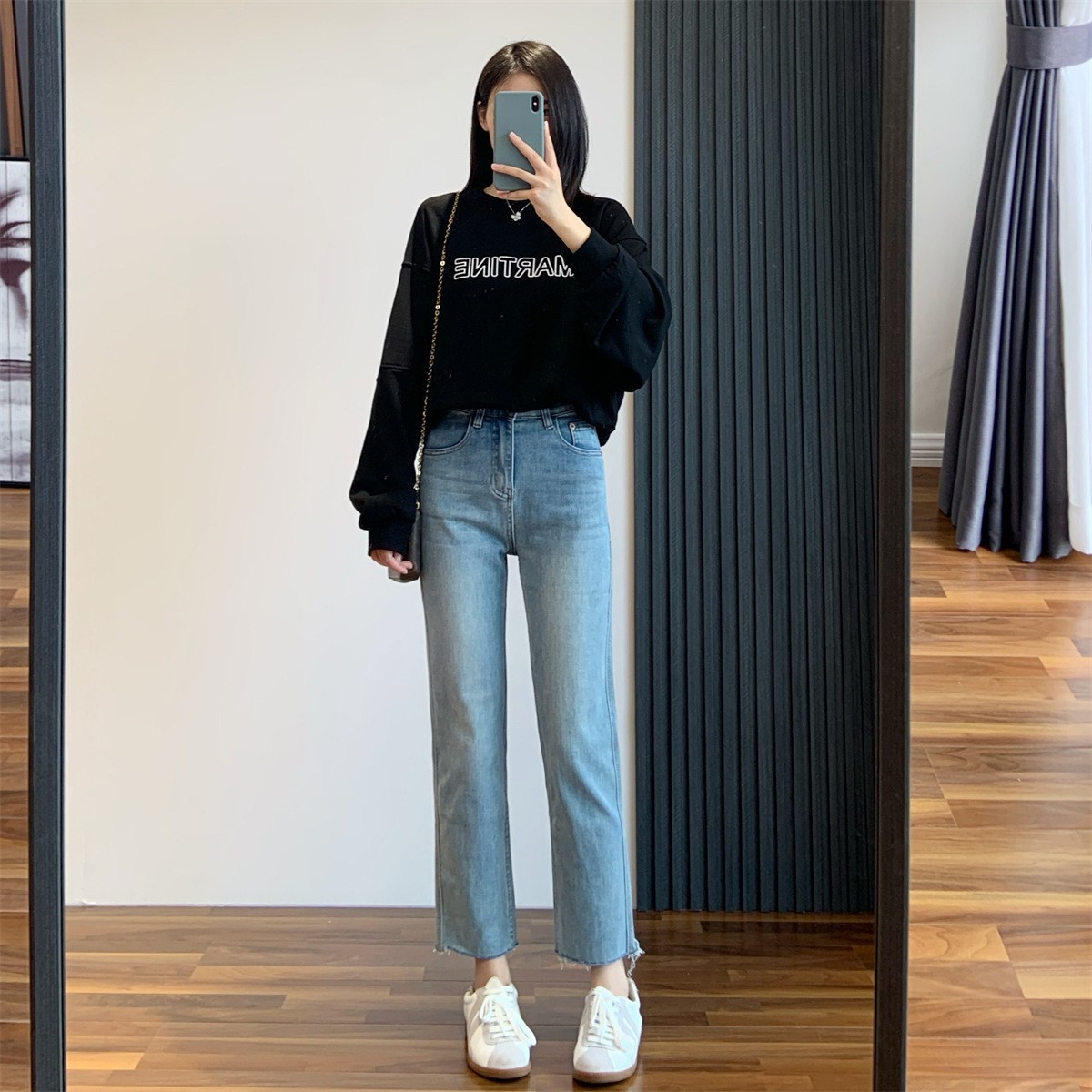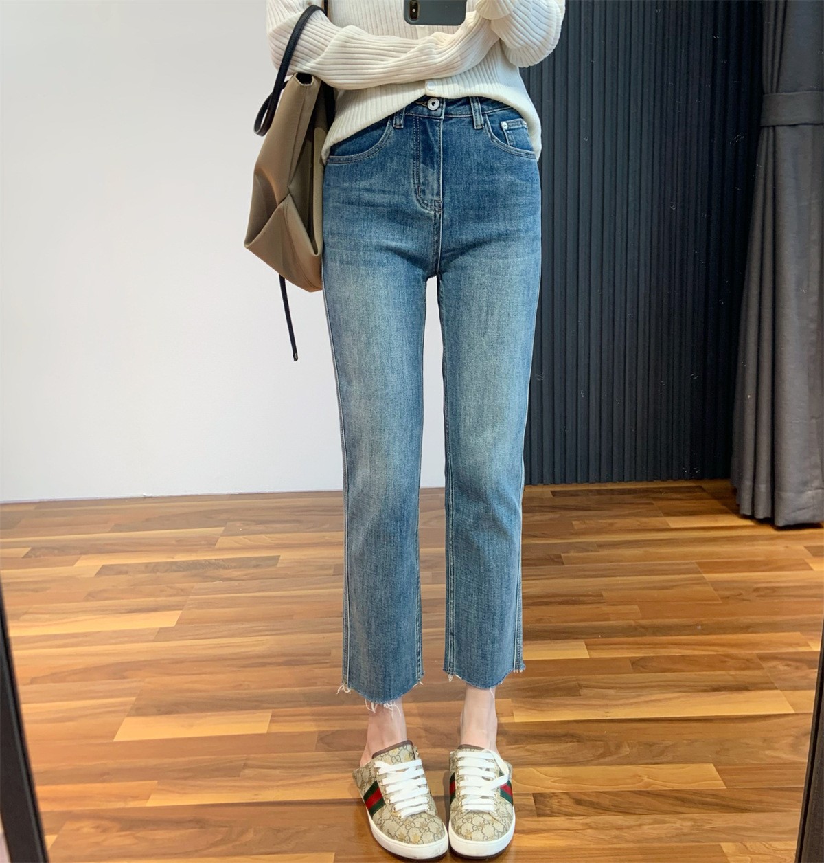 마을 가게의 보물 ~ 4 색 프렌치 스틱 바지! 가을 새로운 빈티지 청바지 여성의 작은 슬림 스트레이트 파이프 바지스토어 가기